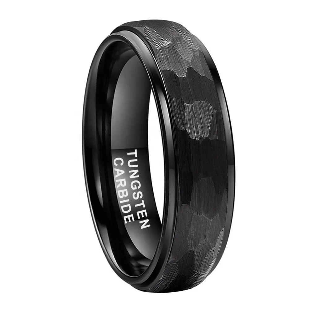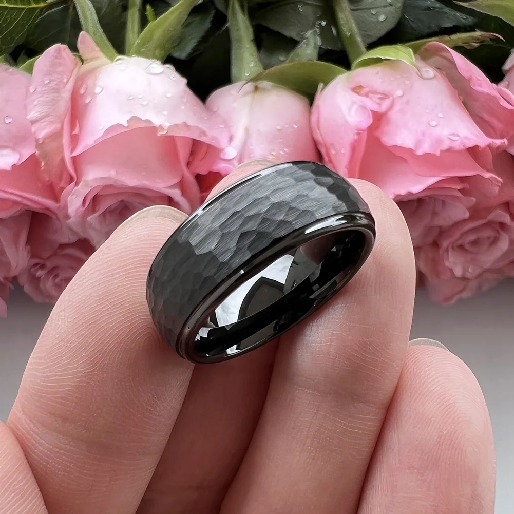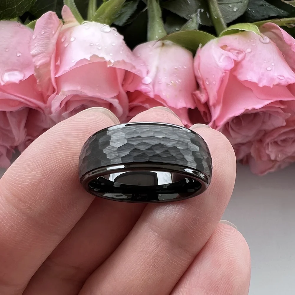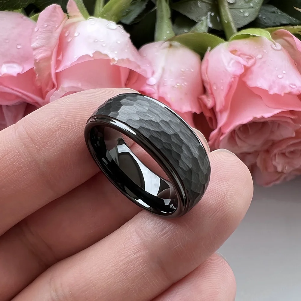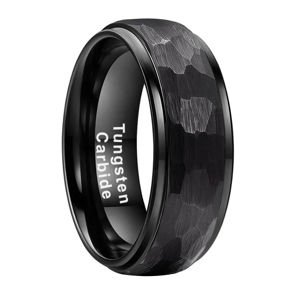 Coolstyle Jewelry 6mm 8mm Black Hammered Tungsten Ring Men Women Fashion Engagement Wedding Band Domed Stepped Comfort Fit