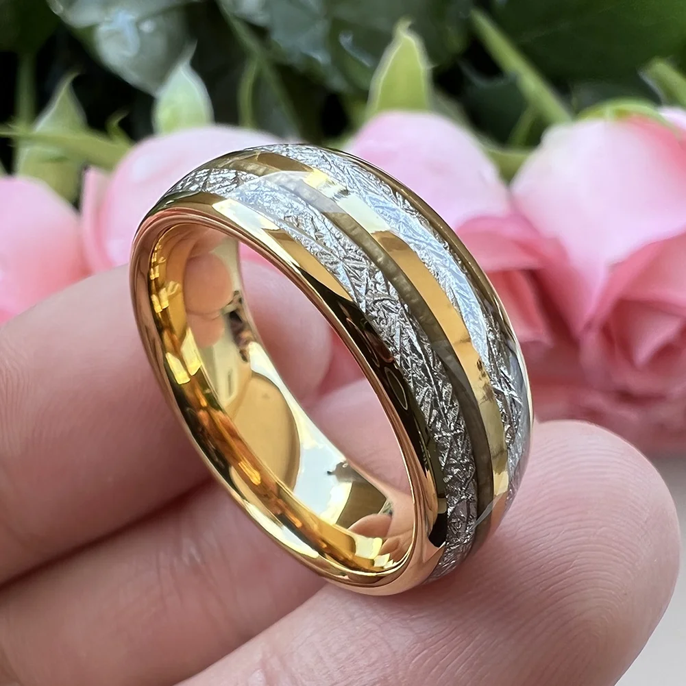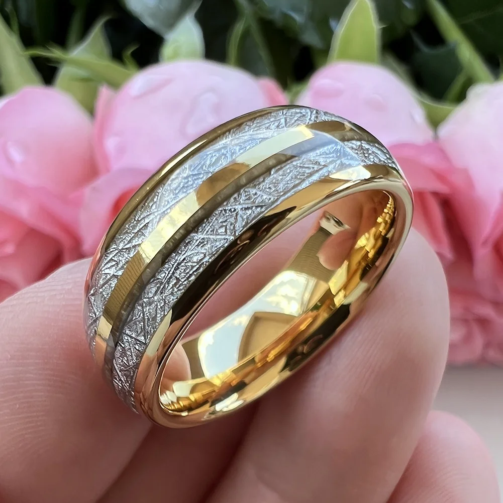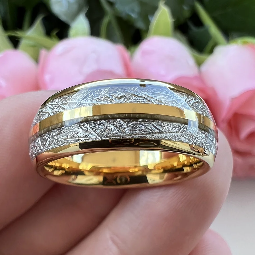 Coolstyle Jewelry 8mm Imitated Meteorite Inlay Fashion Engagement Wedding Band Gold Tungsten Finger Ring for Men Women