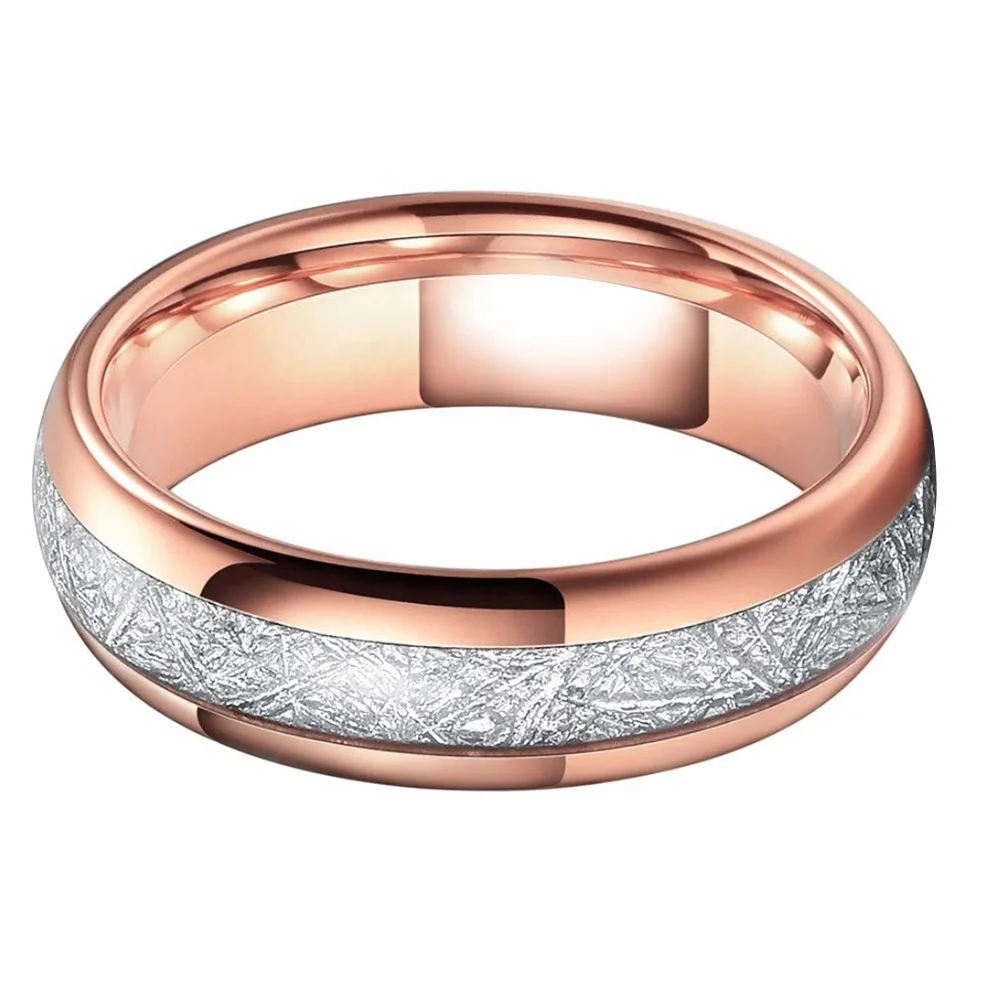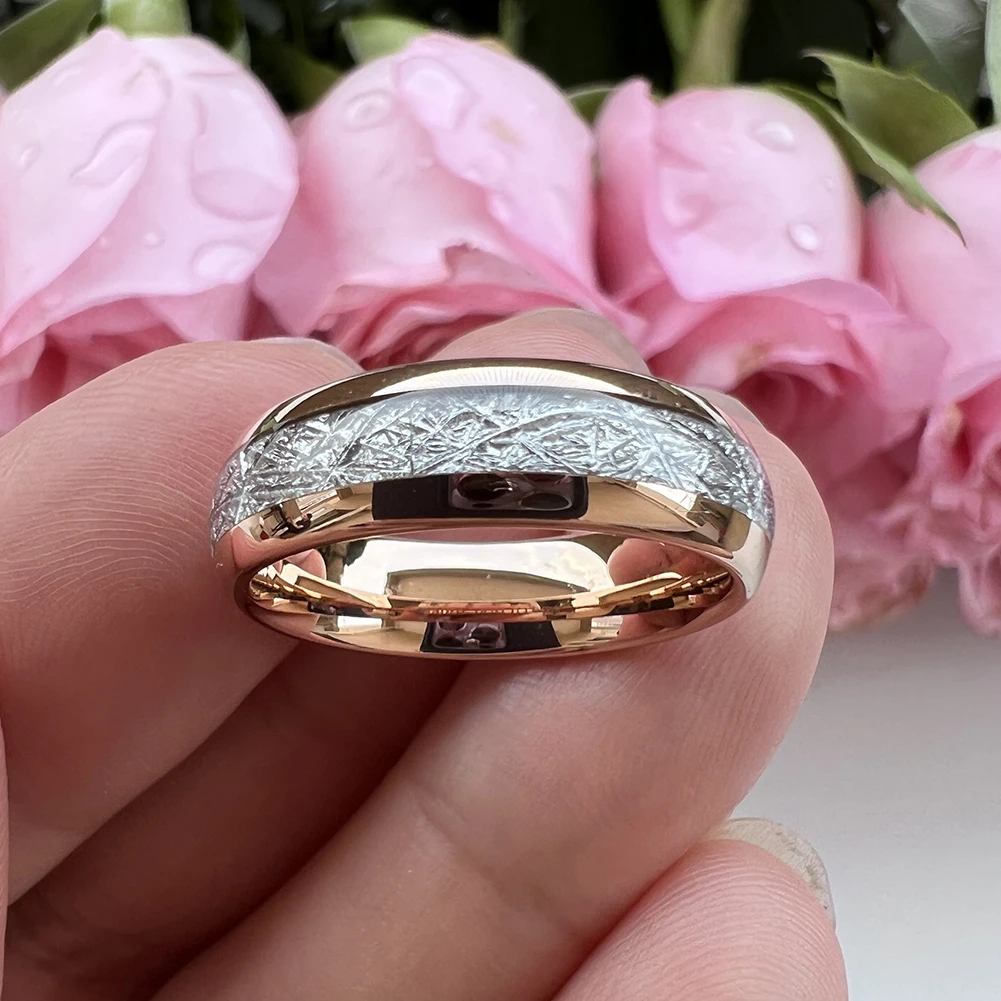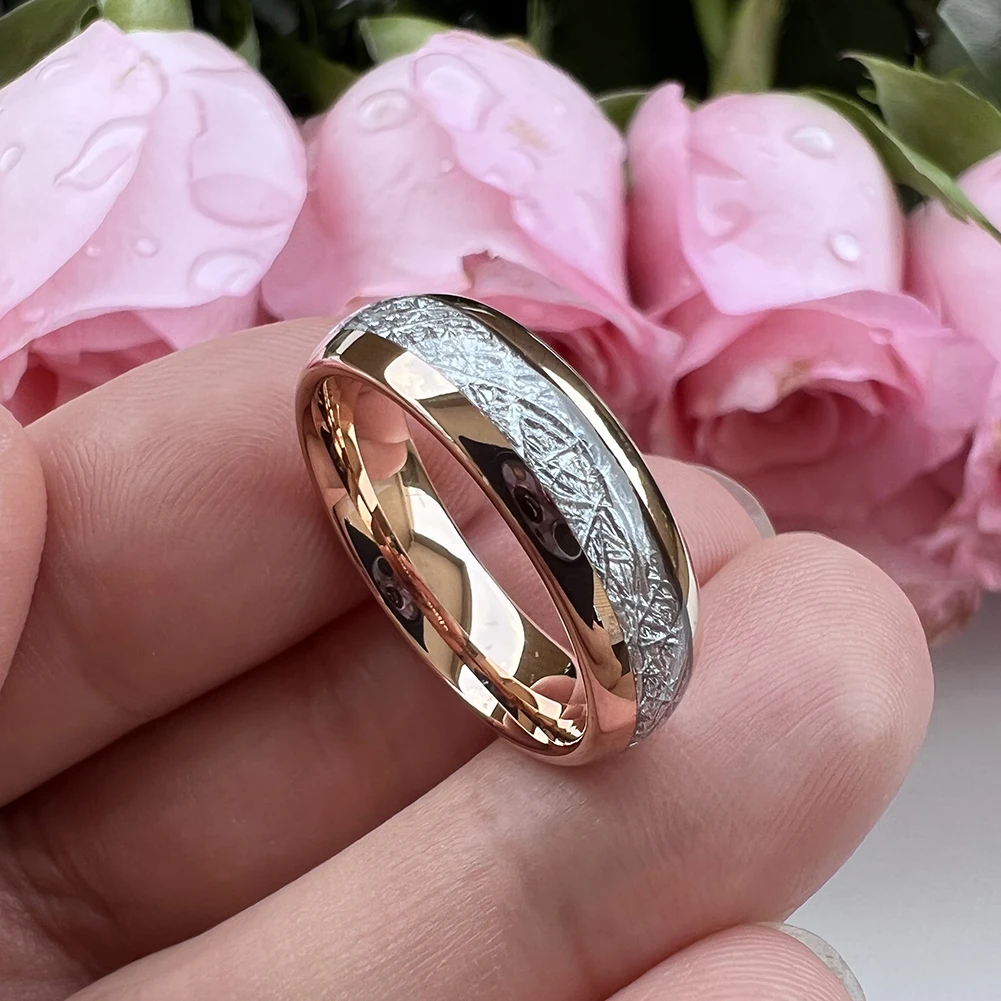 Coolstyle Jewelry 6mm Imitated Meteorite Inlay Fashion Engagement Wedding Band Rose Gold Tungsten Finger Ring for Men Women