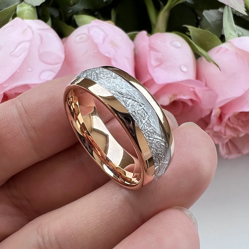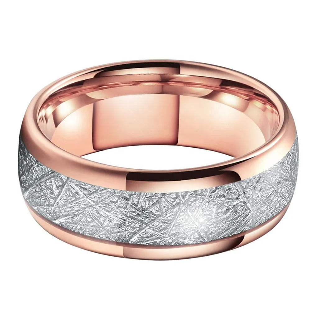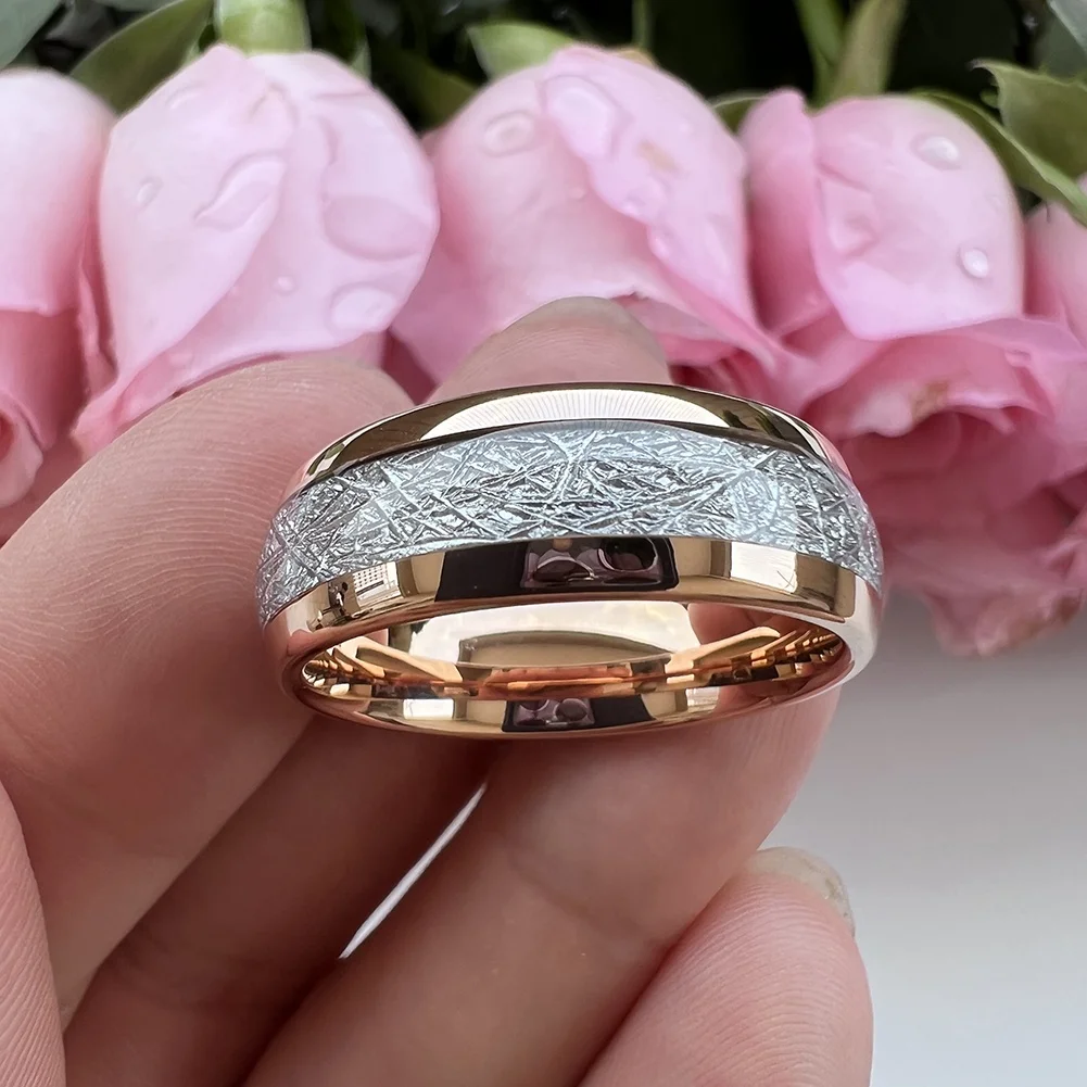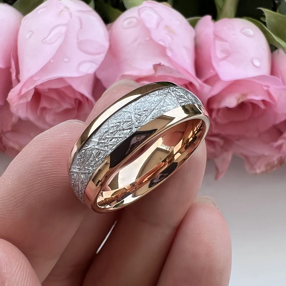 Coolstyle Jewelry 8mm Imitated Meteorite Inlay Fashion Engagement Wedding Band Rose Gold Tungsten Finger Ring for Men Women