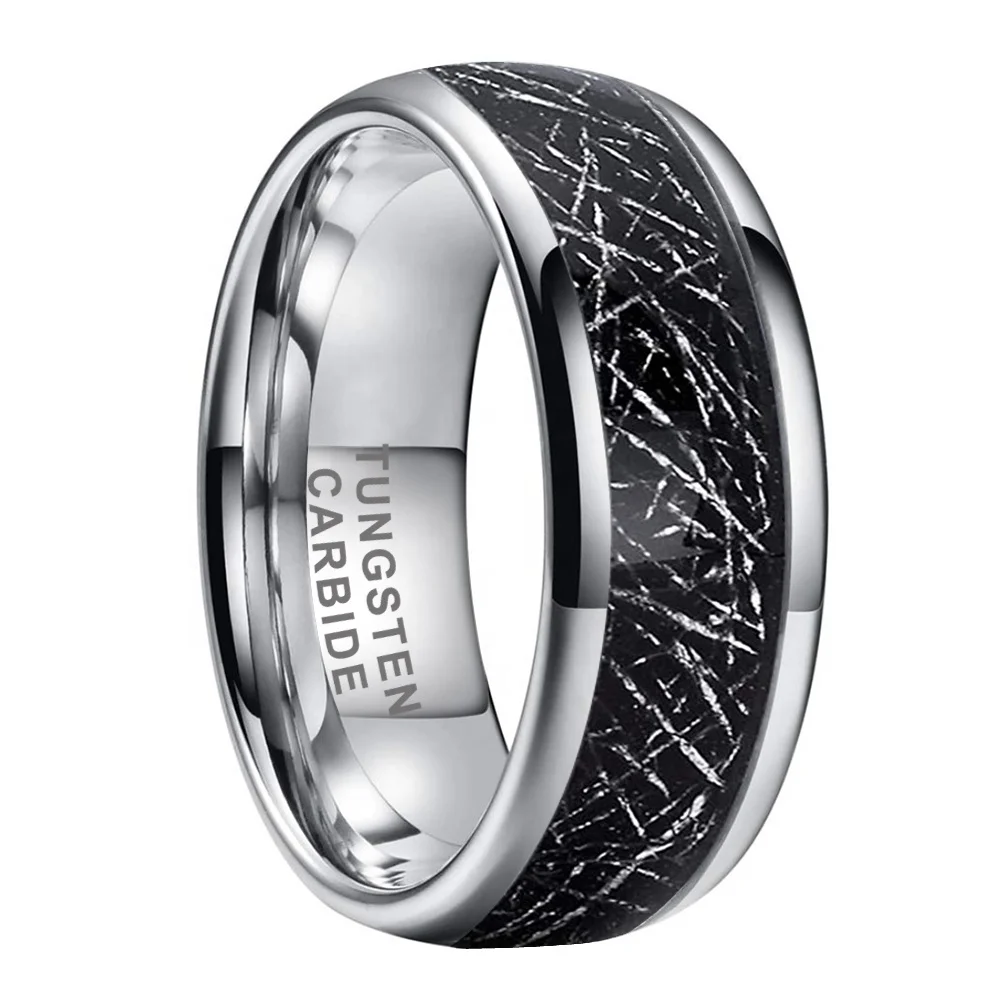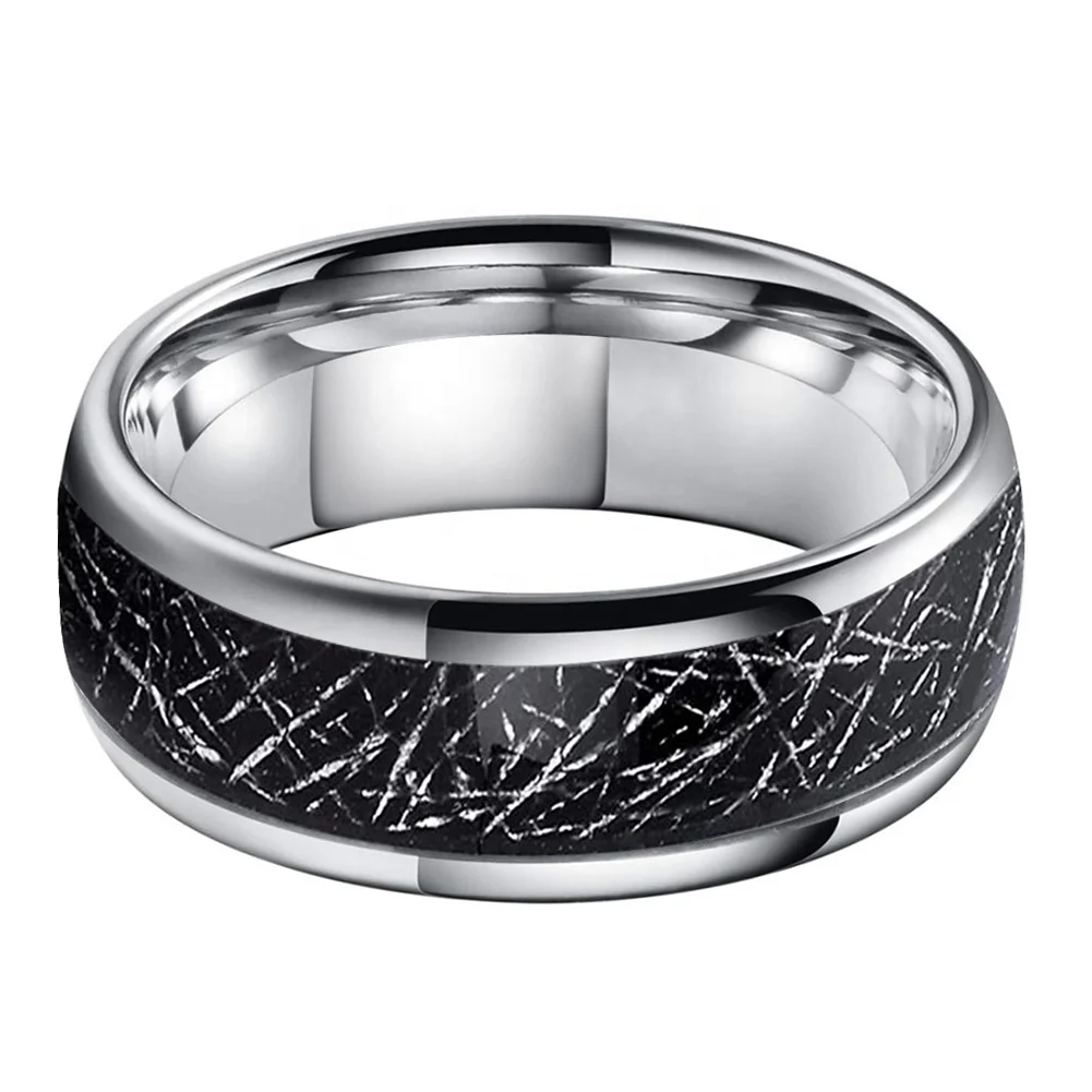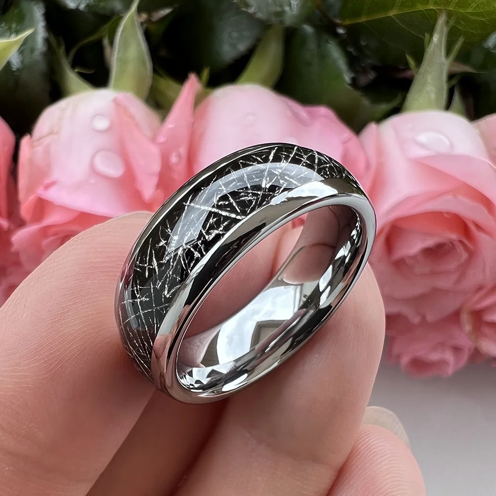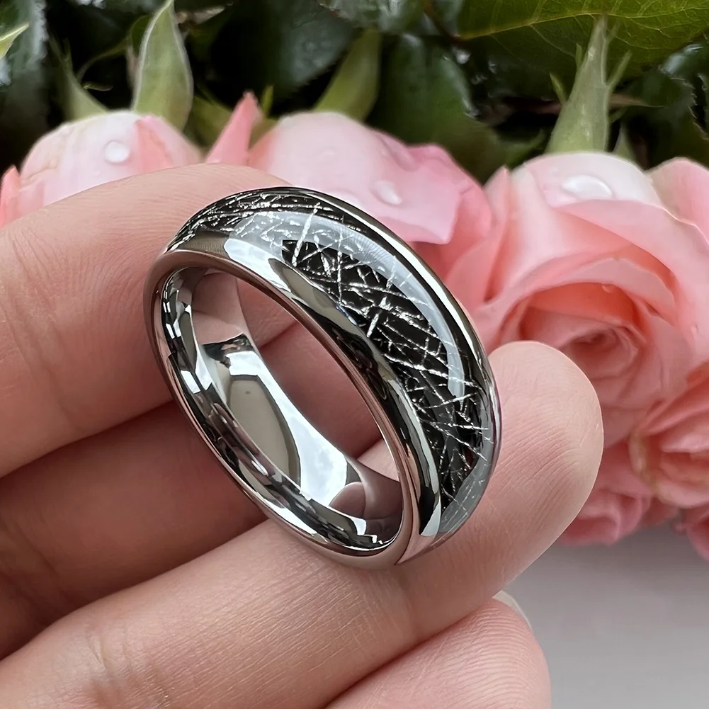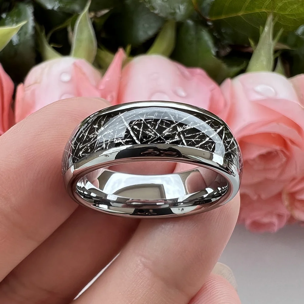 Coolstyle Jewelry 8mm Wholesale Dropshipping Black Meteorite Inlay Tungsten Ring for Men Women Fashion Engagement Wedding Band
