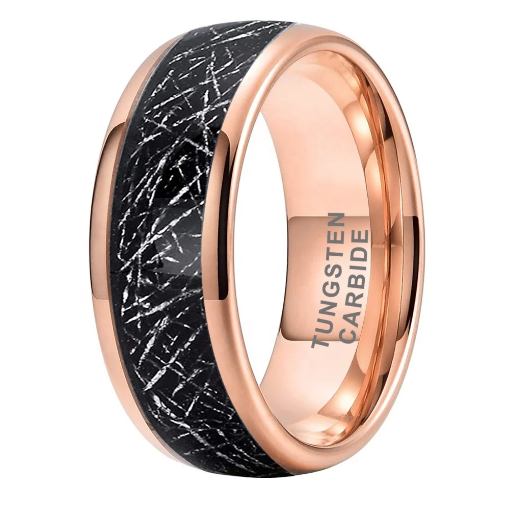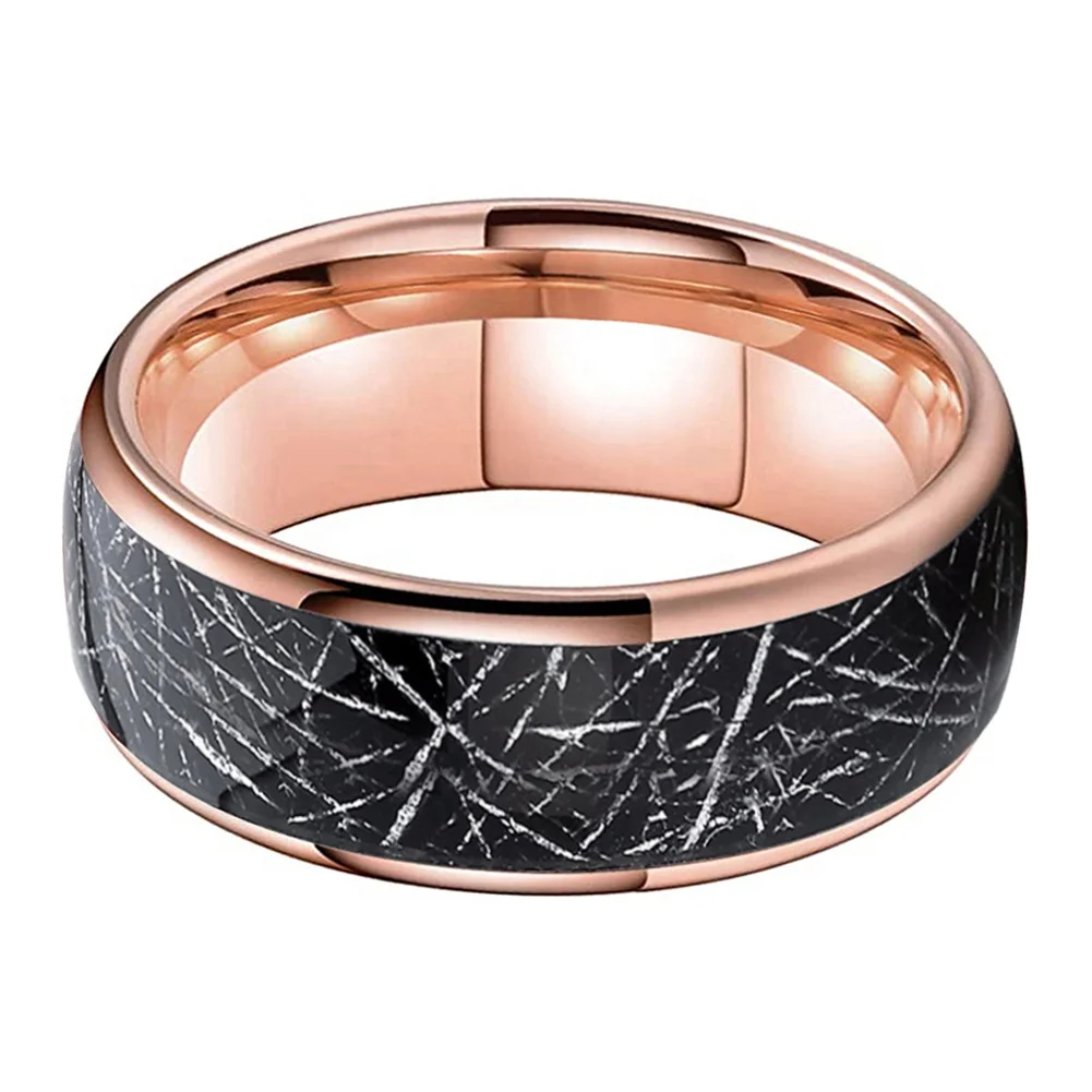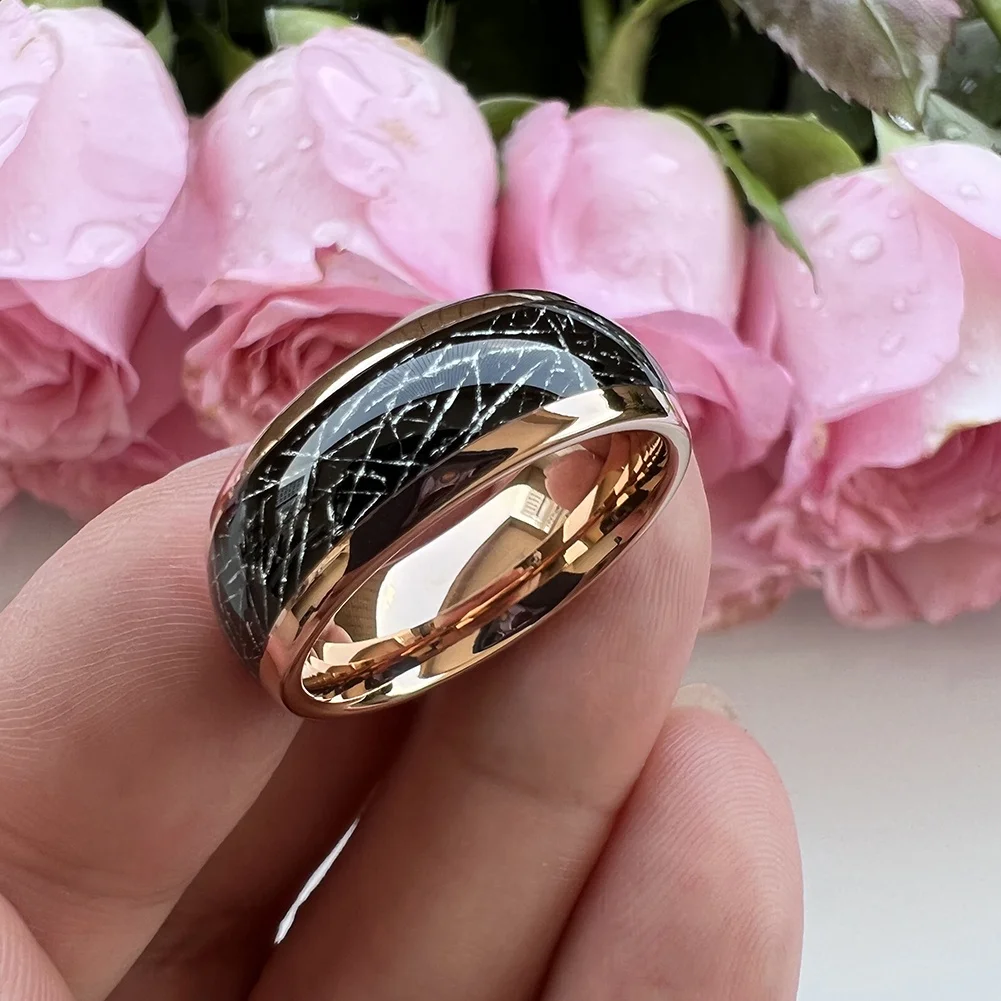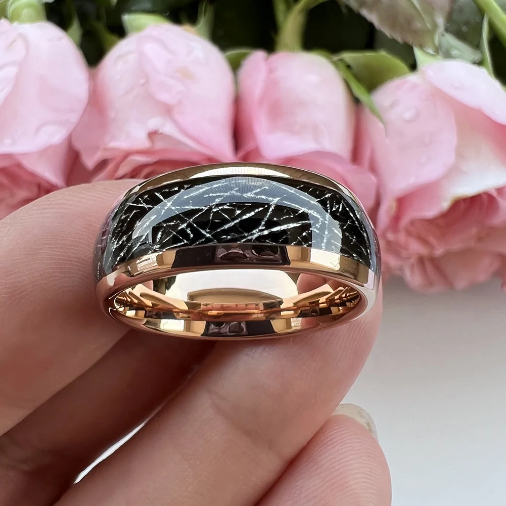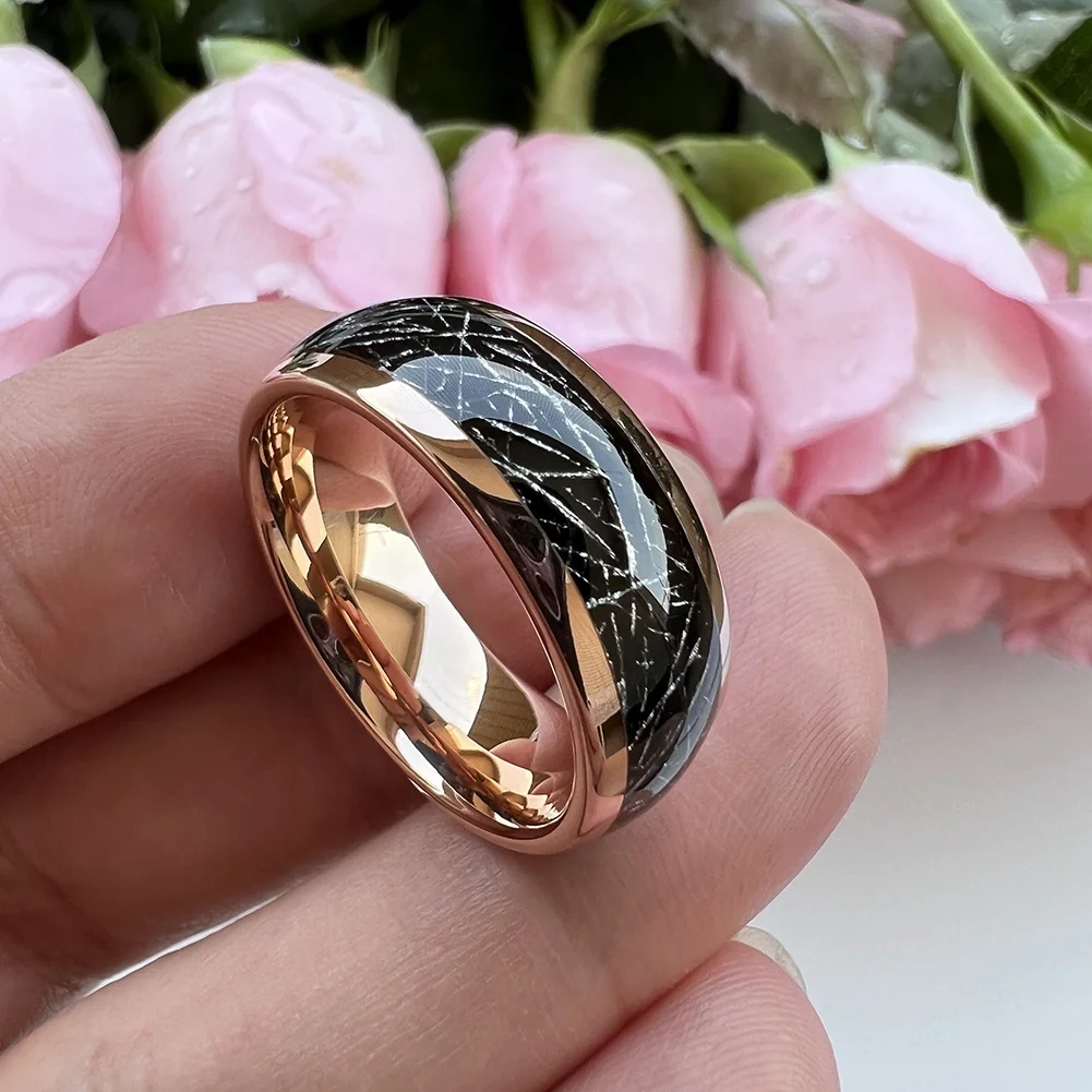Coolstyle Jewelry 8mm Wholesale Dropshipping Meteorite Inlay Rose Gold Tungsten Ring Men Women Fashion Engagement Wedding Band