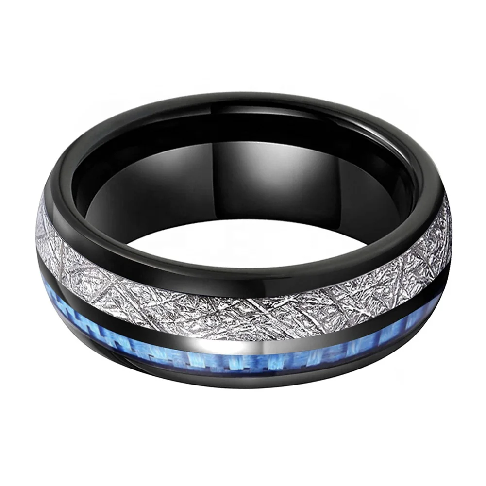 Coolstyle Jewelry 8mm Wholesale Meteorite Carbon Fiber Inlay Black Tungsten Ring Men Women Fashion Engagement Wedding Band