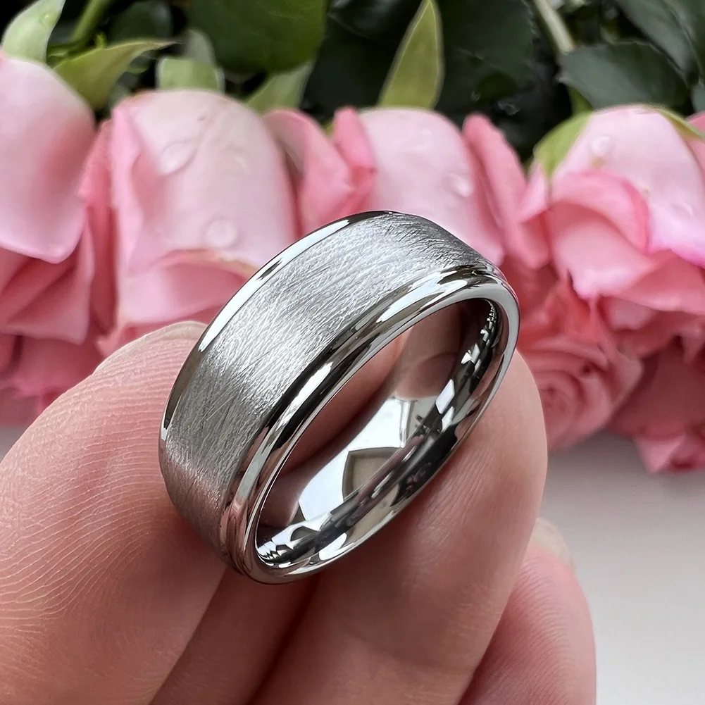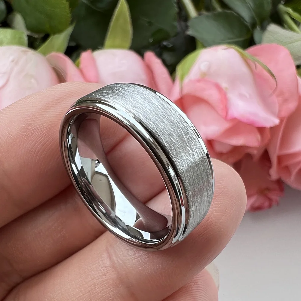 Coolstyle Jewelry 8mm Wholesale Stepped Special Brushed Tungsten Wedding Band for Men Women Engagement Fashion Finger Rings
