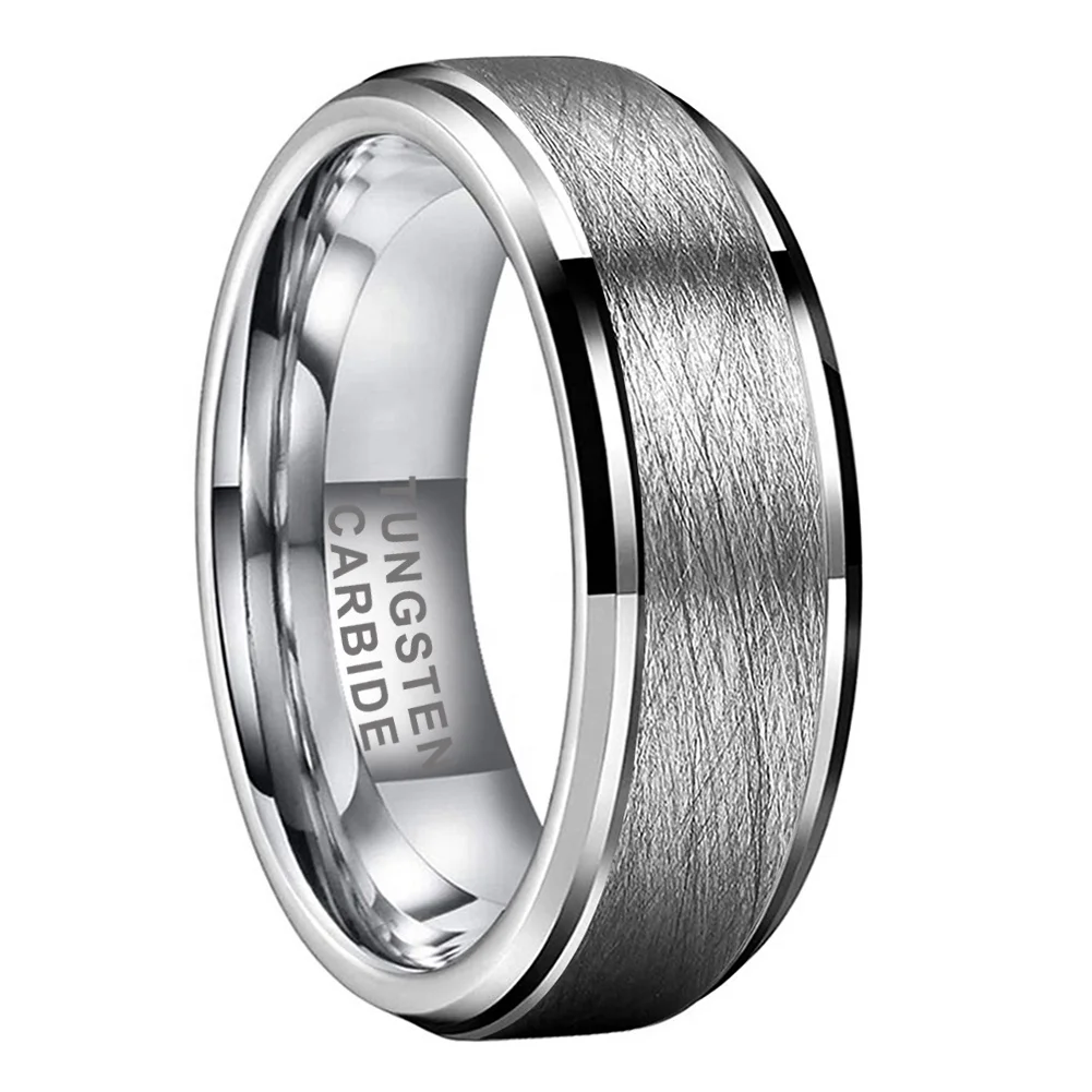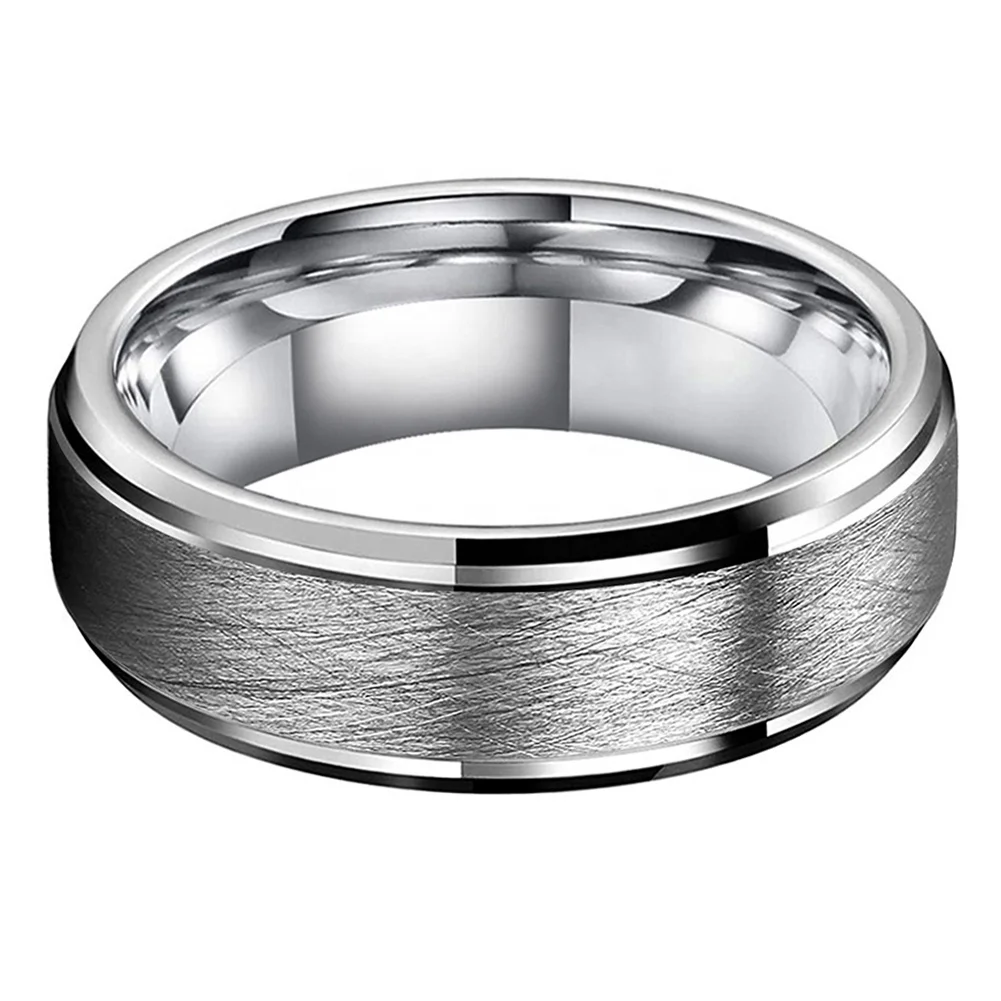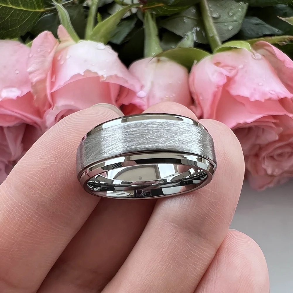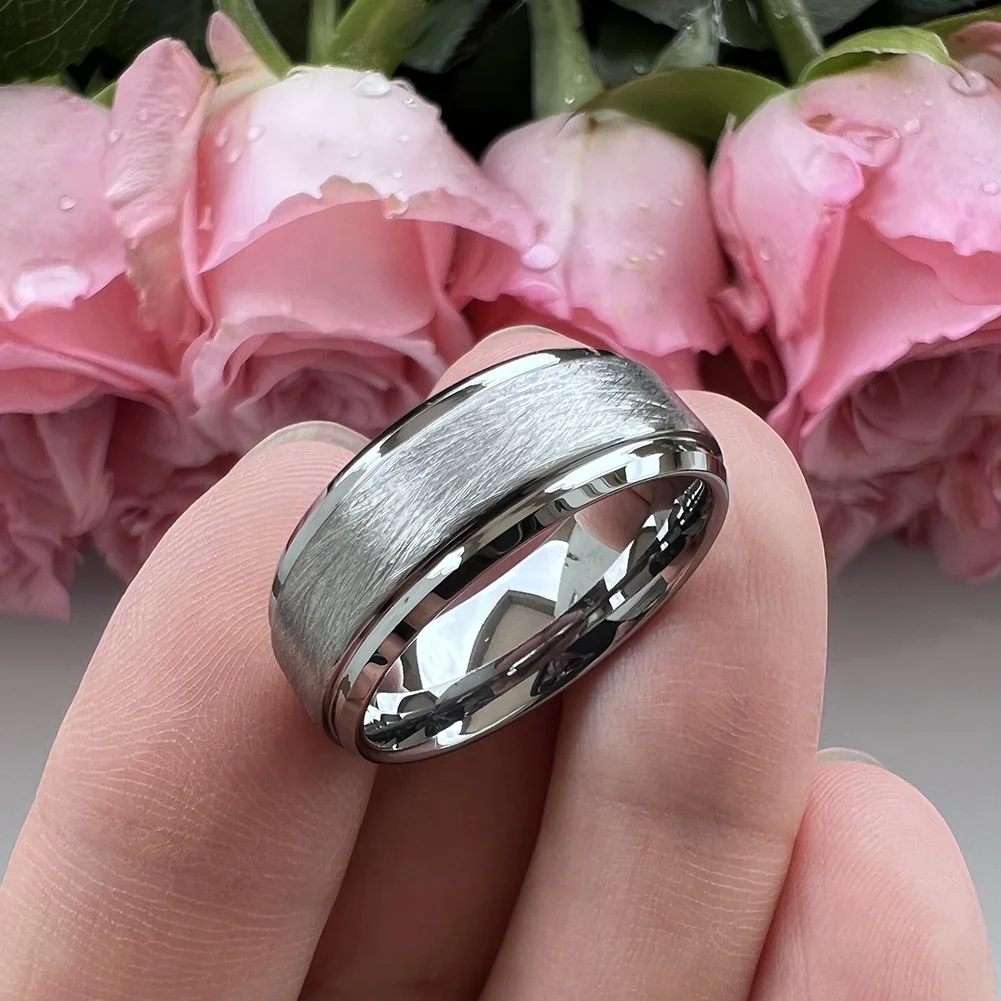 Coolstyle Jewelry 8mm Dropshipping Stepped Beveled Brushed Tungsten Carbide Ring for Men Women Fashion Engagement Wedding Band