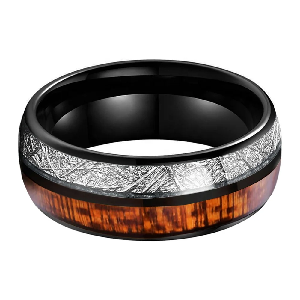 Coolstyle Jewelry 8mm Wholesale Real Wood Meteorite Inlay Imitated Tungsten Ring for Men Women Fashion Engagement Wedding Band
