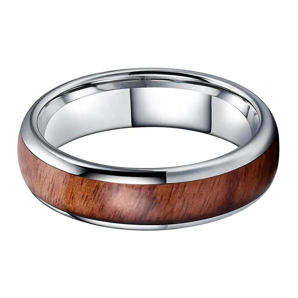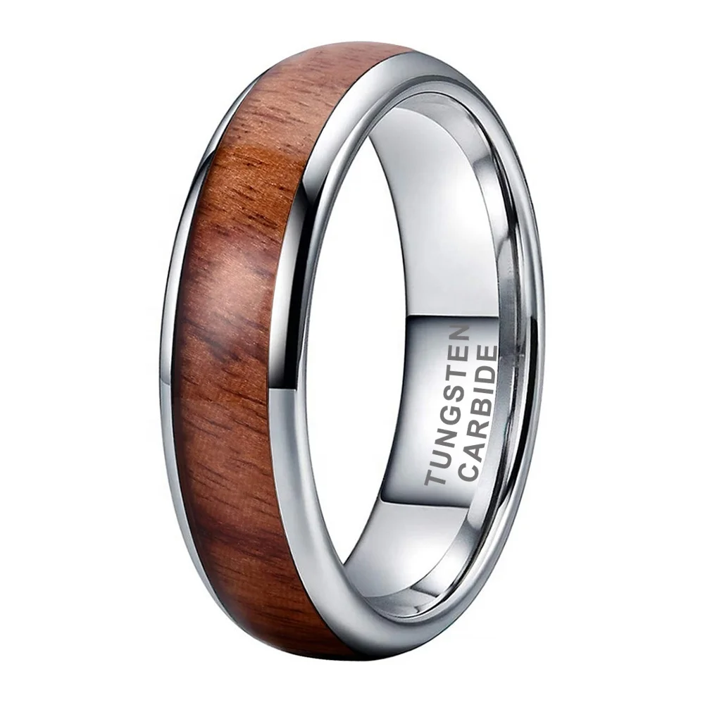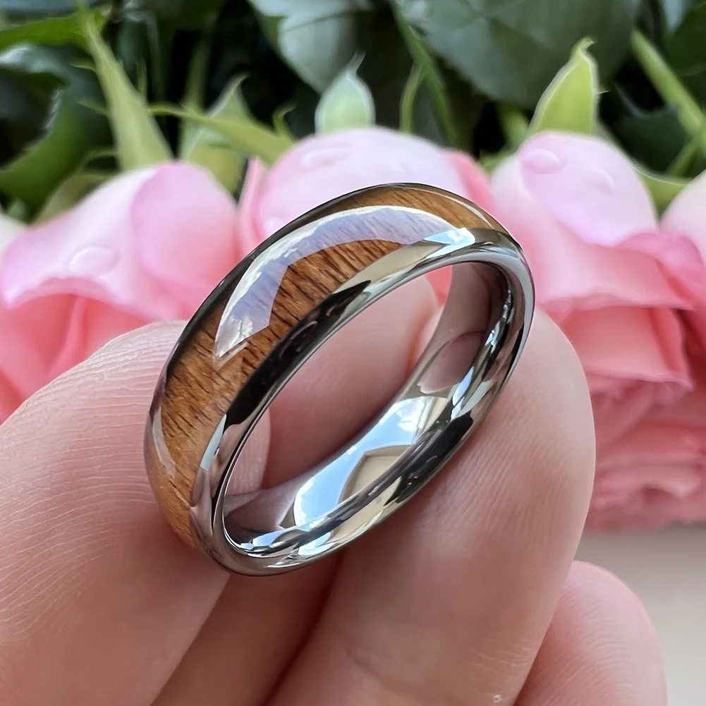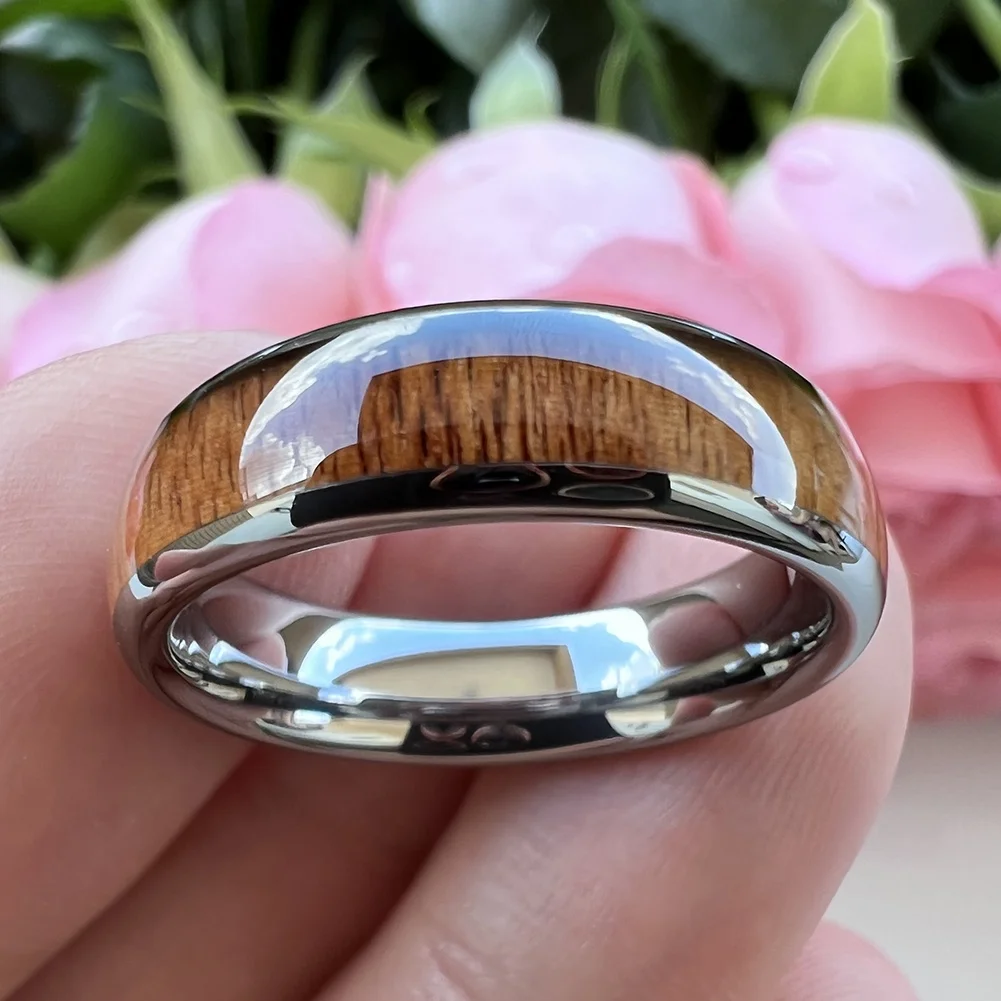 Coolstyle Jewelry 6mm Tungsten Carbide Finger Ring for Men Women Engagement Wedding Band Koa Wood Inlay Domed Comfort Fit