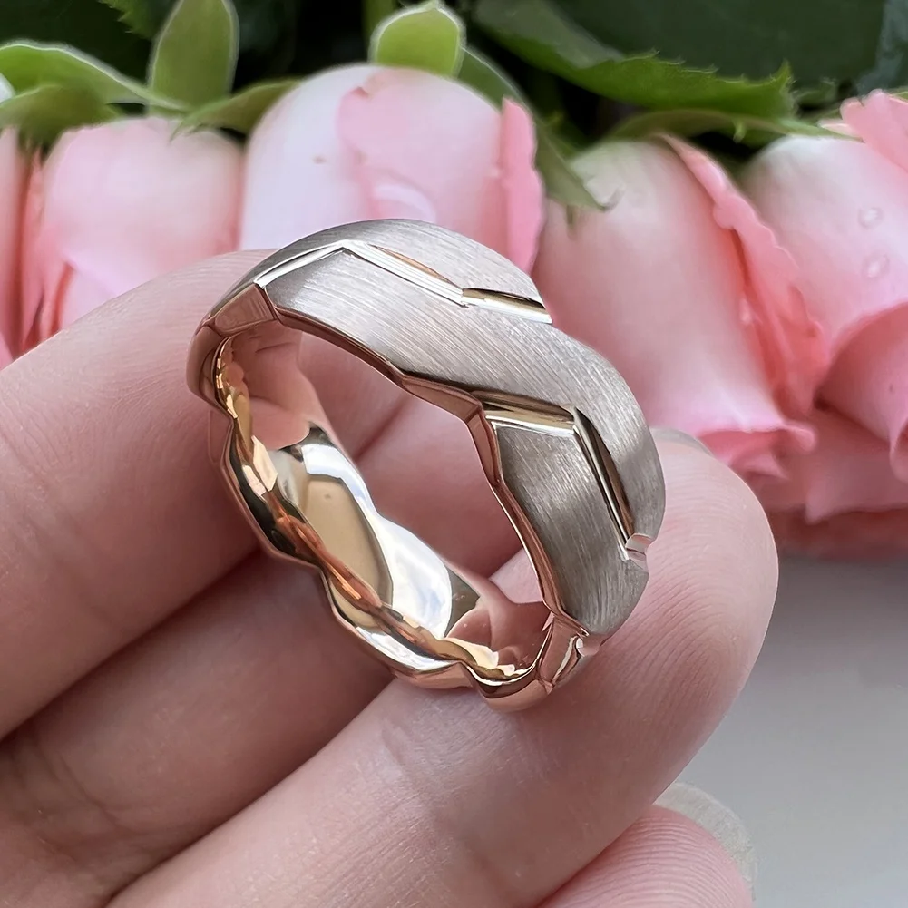 Coolstyle Jewelry 8mm Wholesale Rose Gold Tungsten Ring for Men Women Fashion Engagement Wedding Band Domed Brushed Comfort Fit