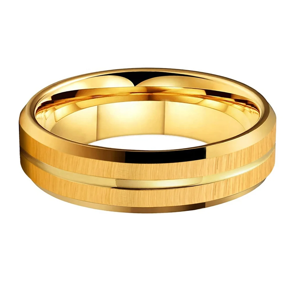 Coolstyle Jewelry 6mm Grooved Beveled Brushed Gold Tungsten Ring for Men Women Fashion Engagement Wedding Band Comfort Fit