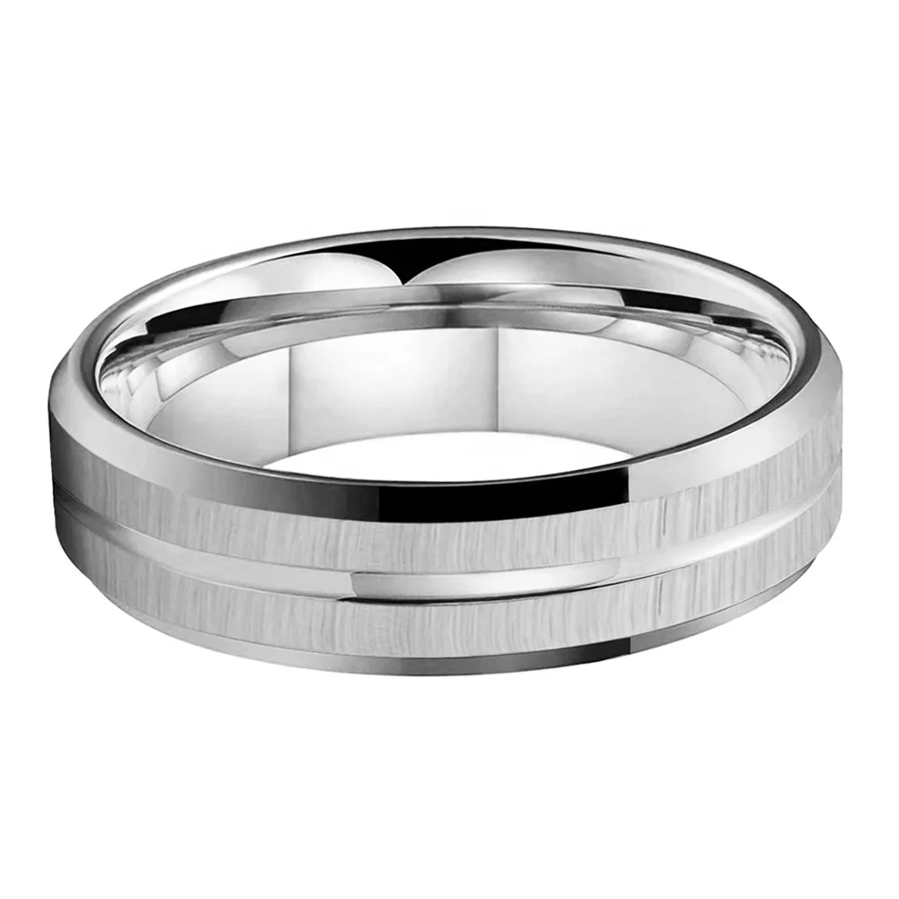 Coolstyle Jewelry 6mm Grooved Beveled Brushed Tungsten Carbide Ring for Men Women Fashion Engagement Wedding Band Comfort Fit