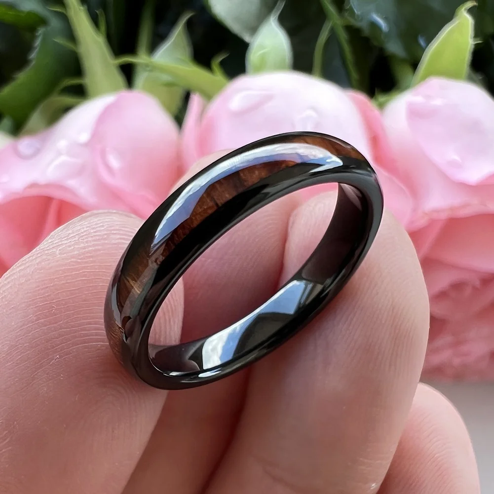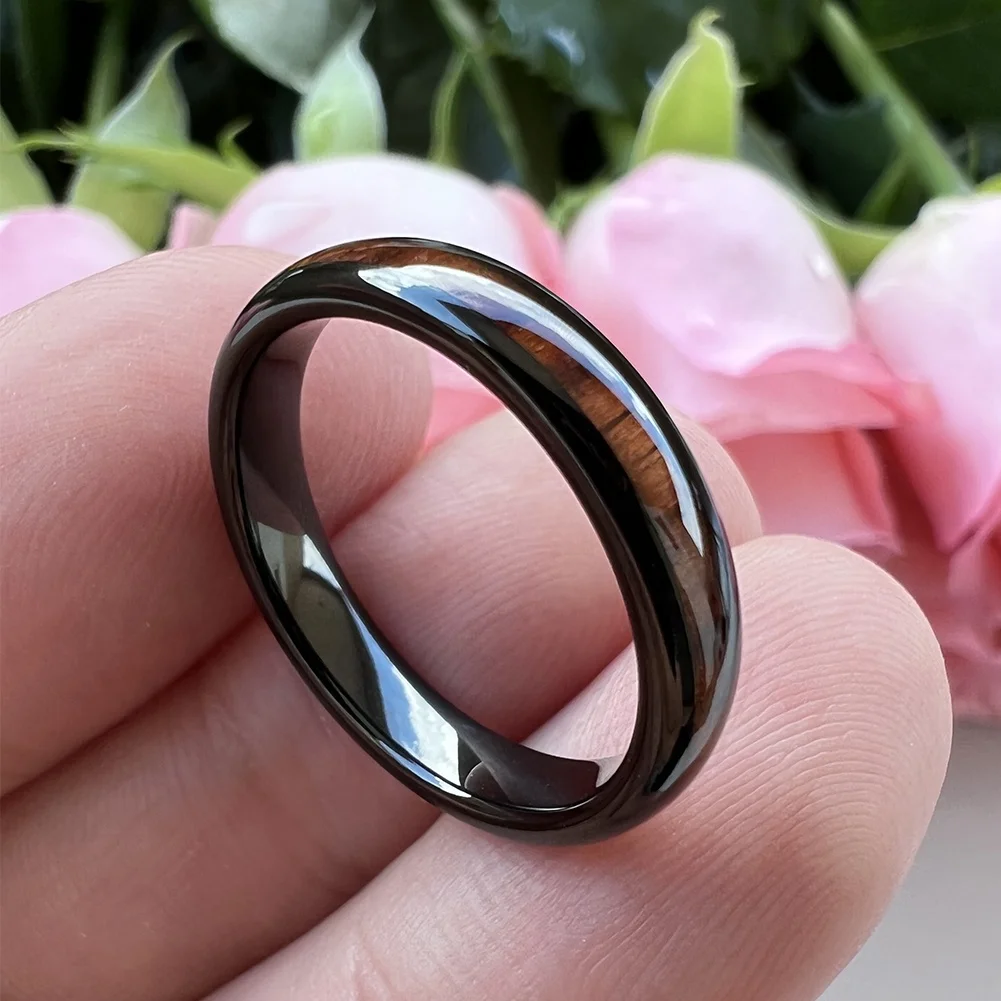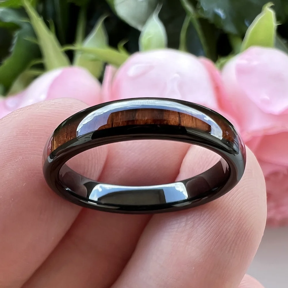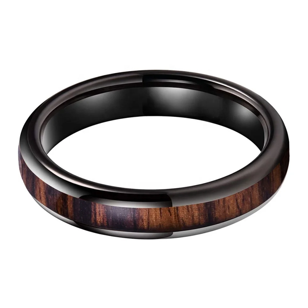 Coolstyle Jewelry 4mm Koa Wood Inlay Black Tungsten Ring for Men Women Engagement Wedding Band Domed Comfort Fit