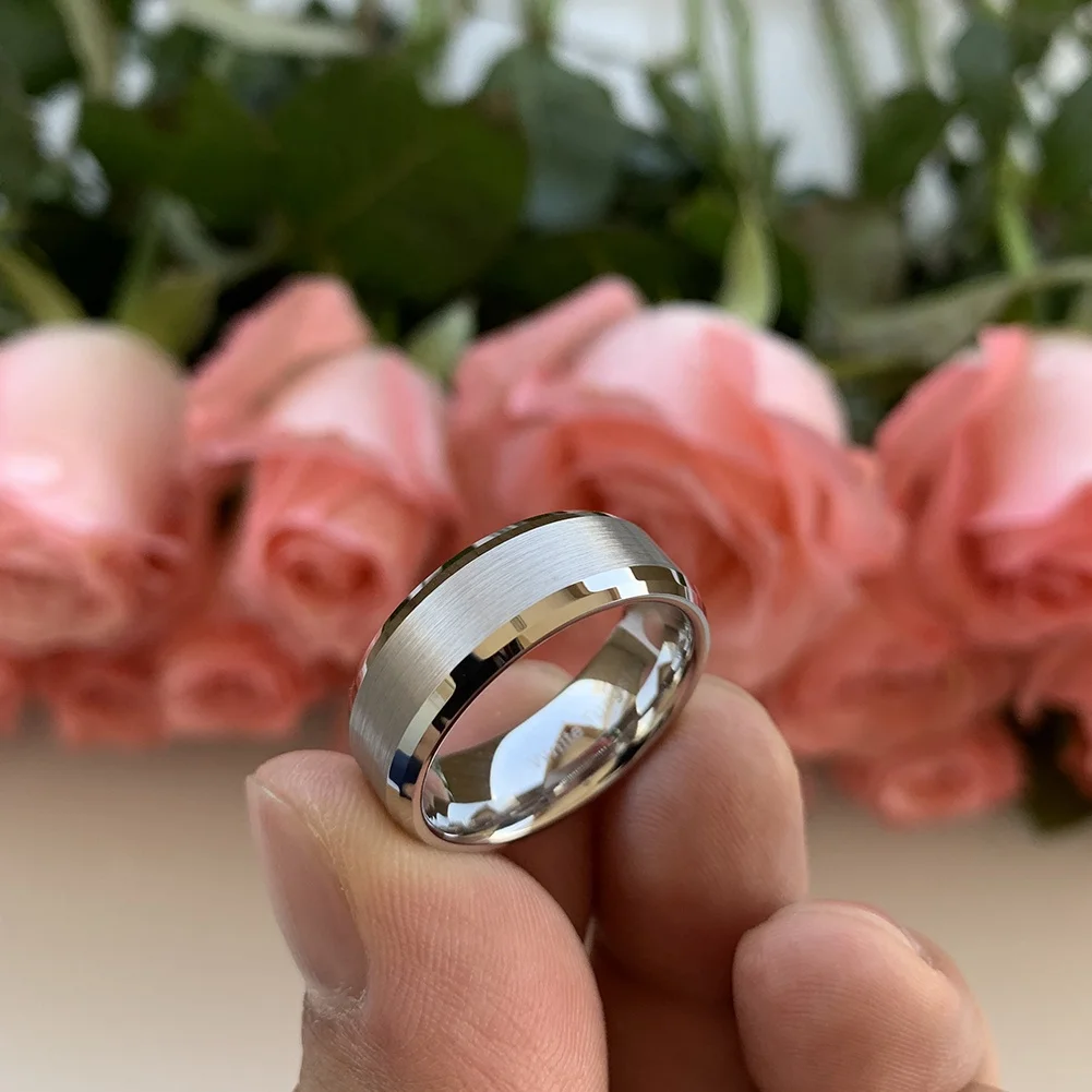 Coolstyle Jewelry 8mm Wholesale Dropshipping Double Beveled Tungsten Finger Ring for Men Women Fashion Engagement Wedding Band