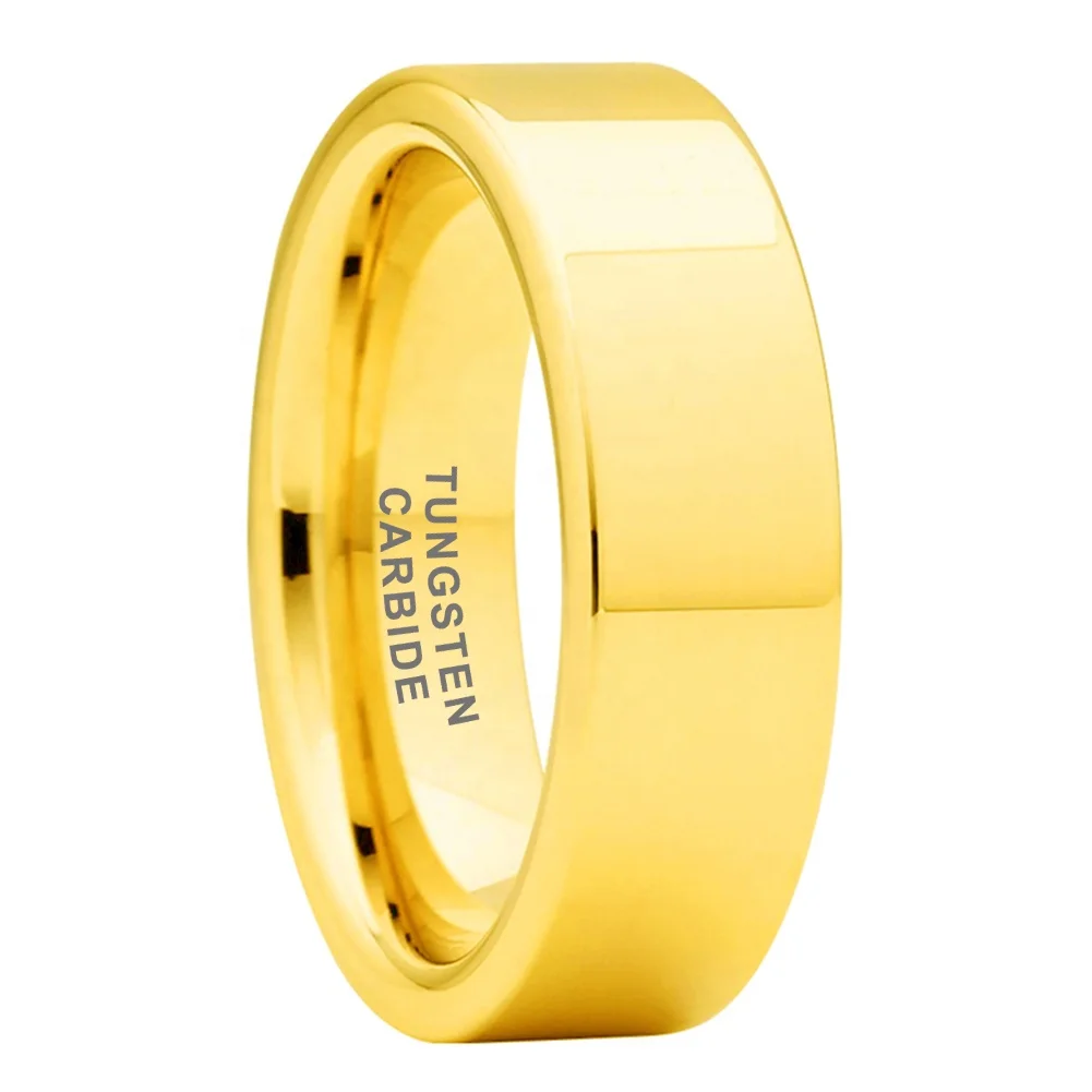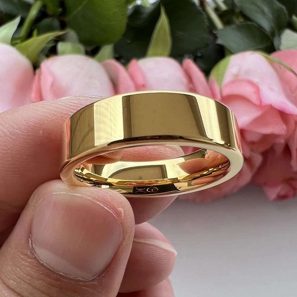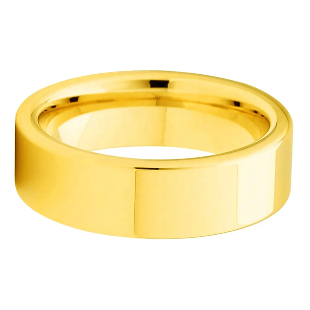 Coolstyle Jewelry 6mm Pipe Cut Polished Gold Plated Tungsten Wedding Band for Men Women Fashion Engagement Finger Ring
