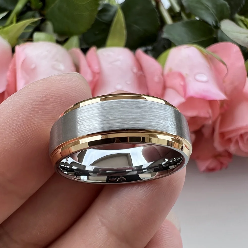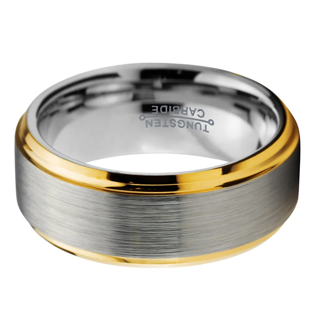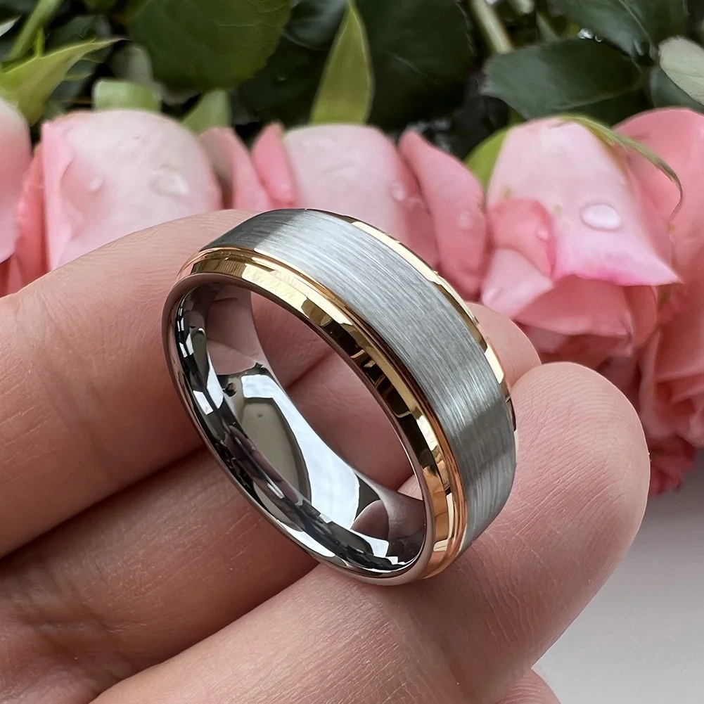 Coolstyle Jewelry 8mm Wholesale Stepped Beveled Edges Gold Tungsten Wedding Band for Men Women Fashion Engagement Finger Rings