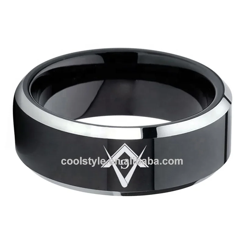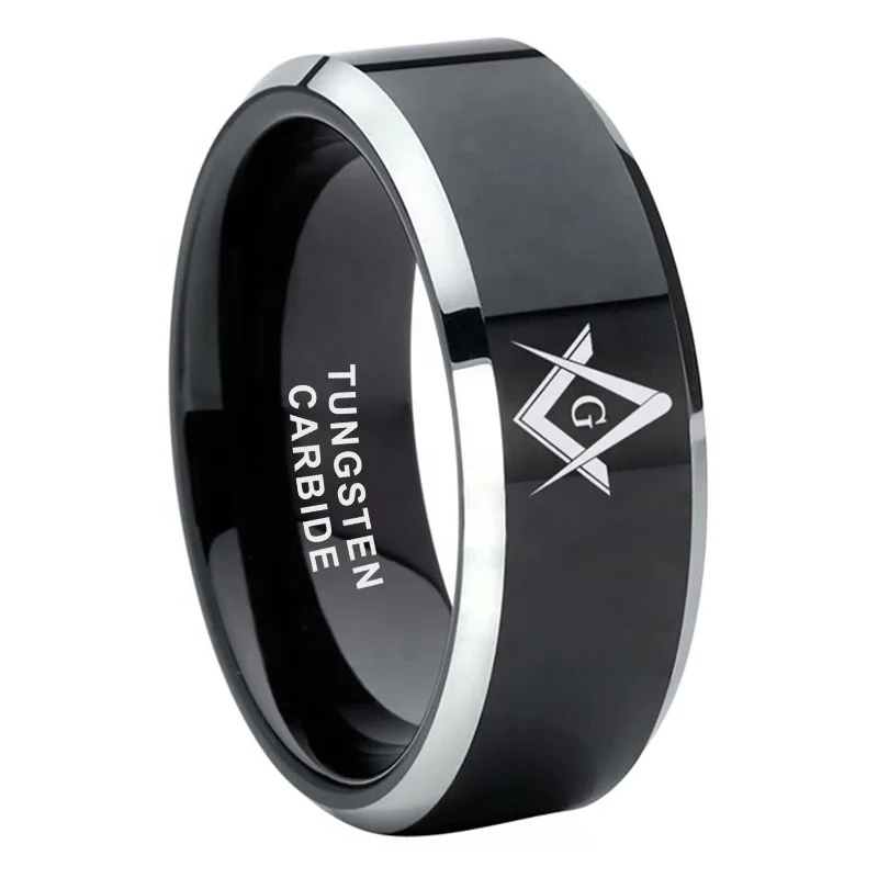 Coolstyle Jewelry 8mm Black Tungsten Ring for Women Men Engagement Wedding Band Laser Engraved Beveled Polished Comfort Fit