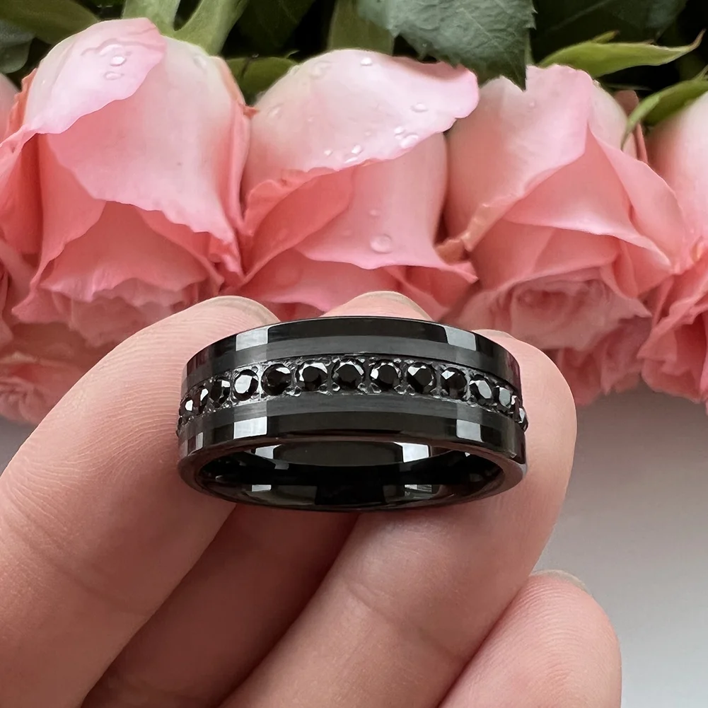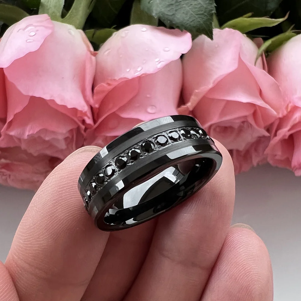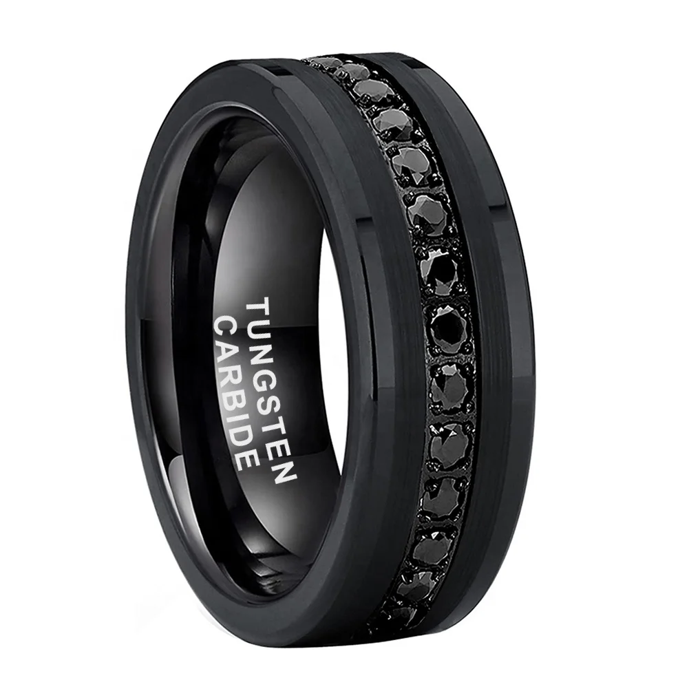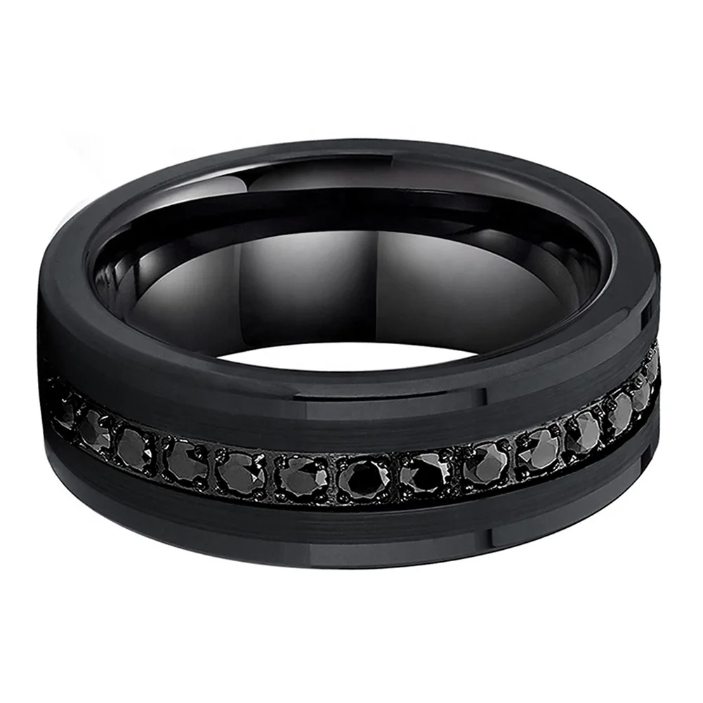 Coolstyle Jewelry 8mm Pipe Cut CZ Stone Inlay Black Tungsten Ring for Men Women Eternity Fashion Engagement Wedding Band