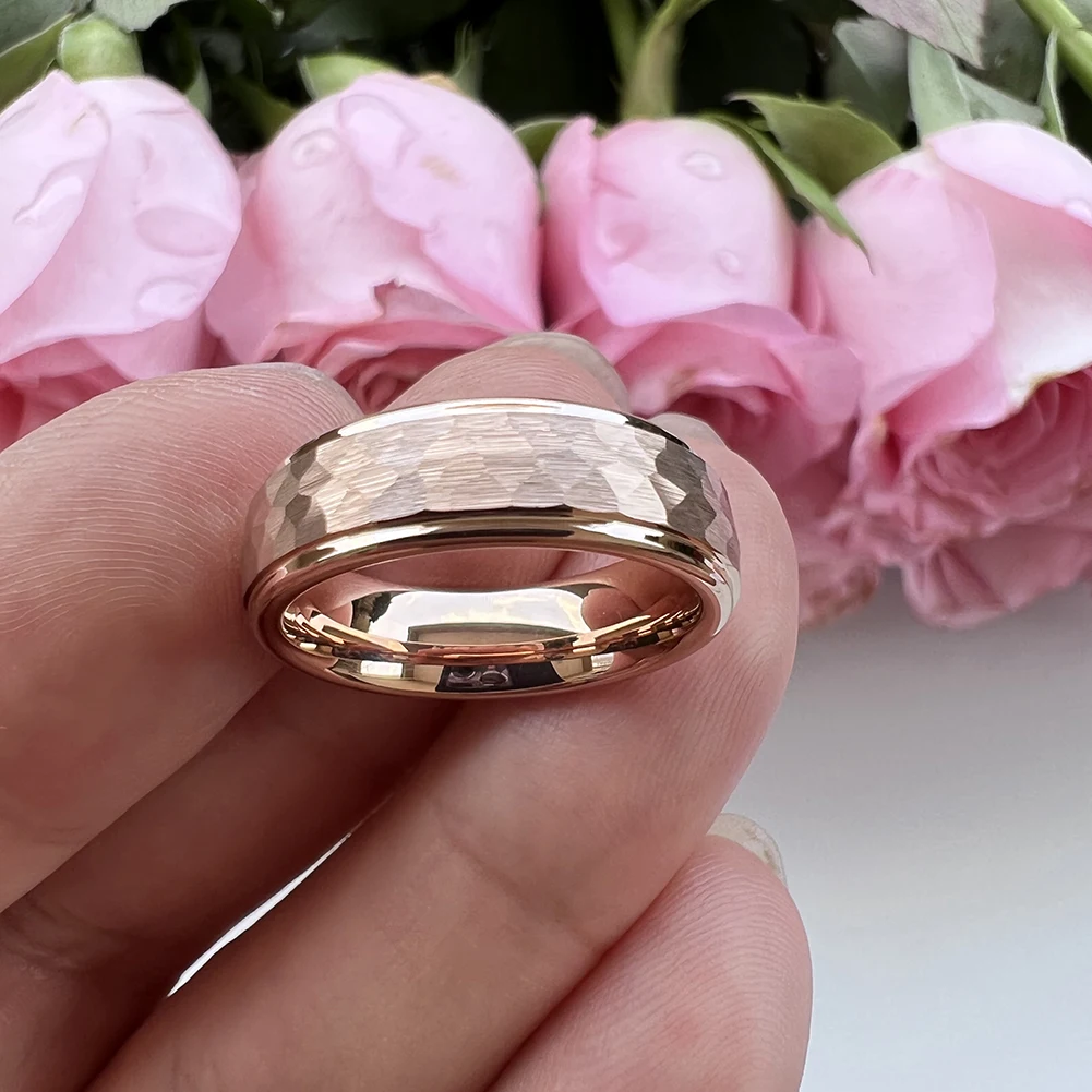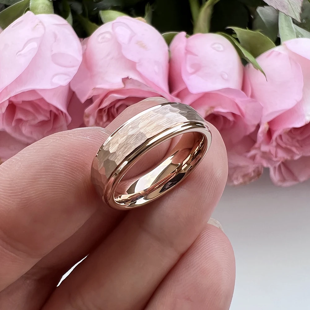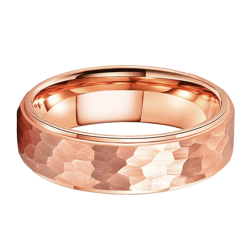Coolstyle Jewelry Wholesale 6mm Rose Gold Hammered Tungsten Carbide Ring for Men Women Fashion Engagement Wedding Band