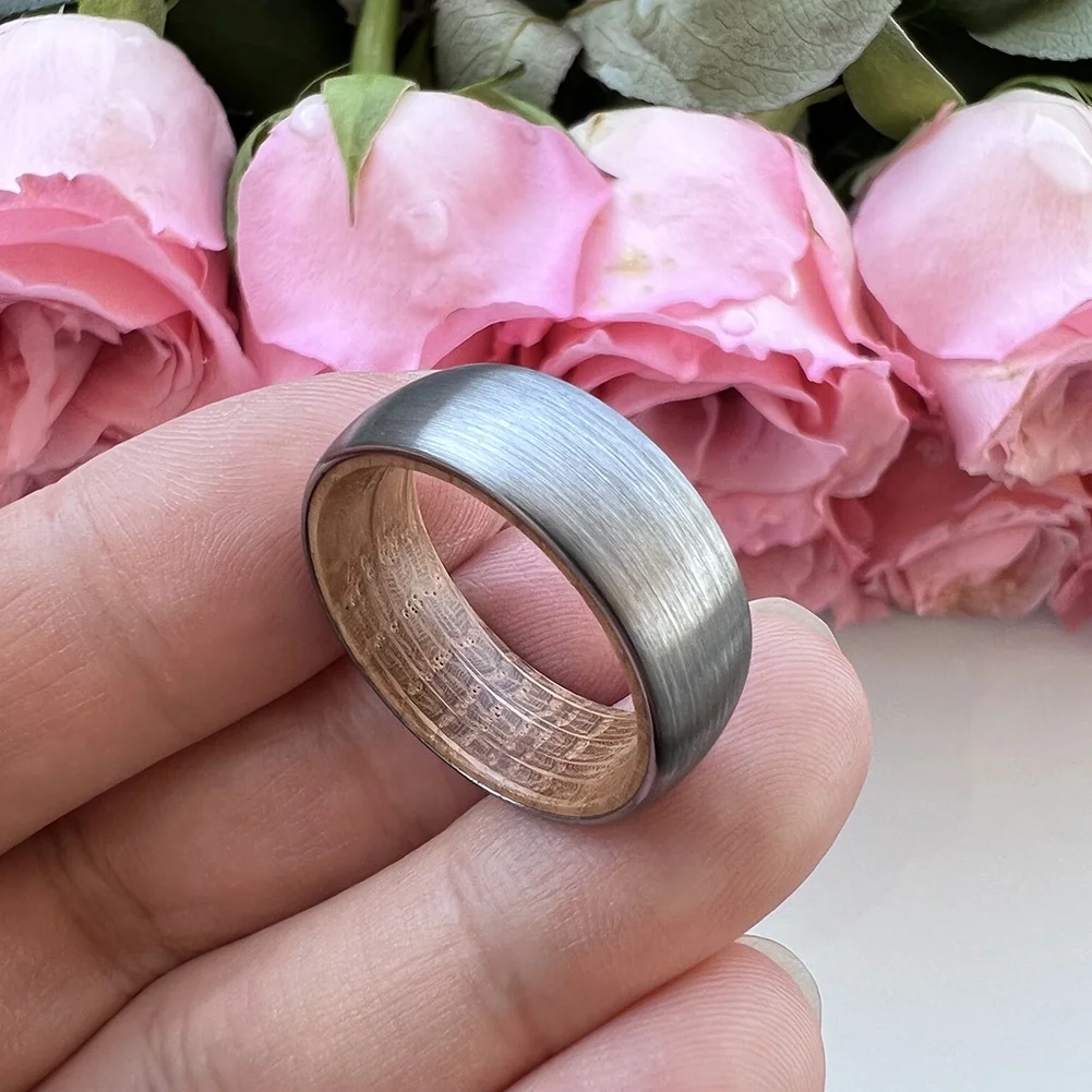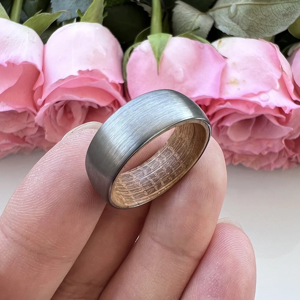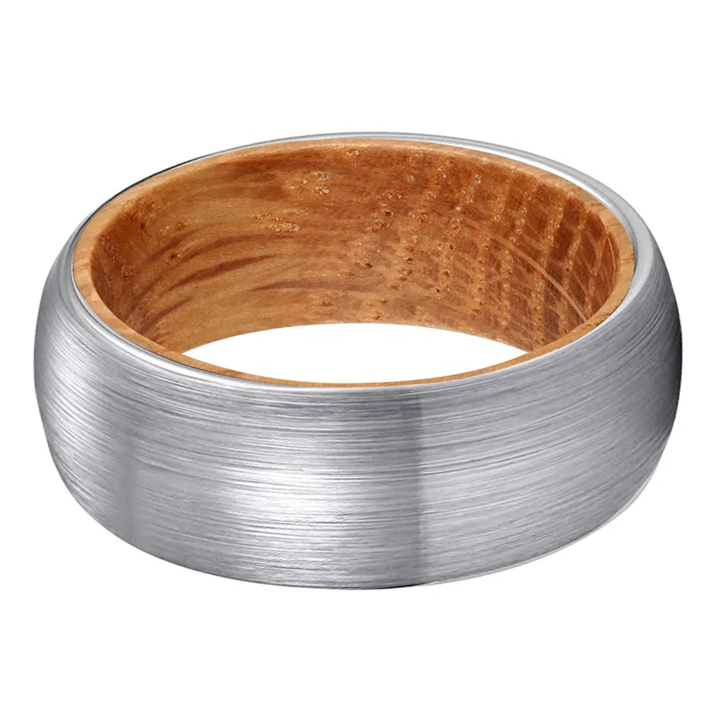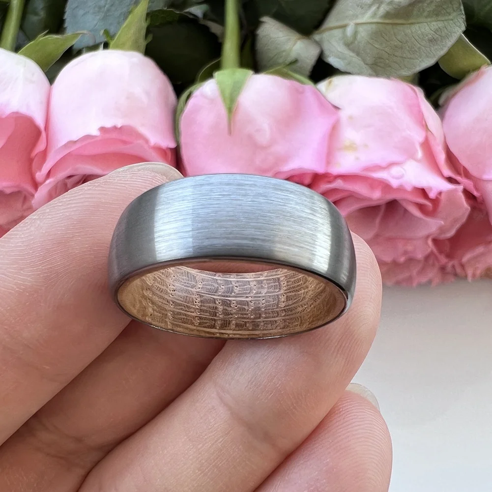 Coolstyle Jewelry Wholesale 8mm Whisky Barrel Oak Wood Inlay Tungsten Carbide Ring for Men Women Fashion Engagement Wedding Band