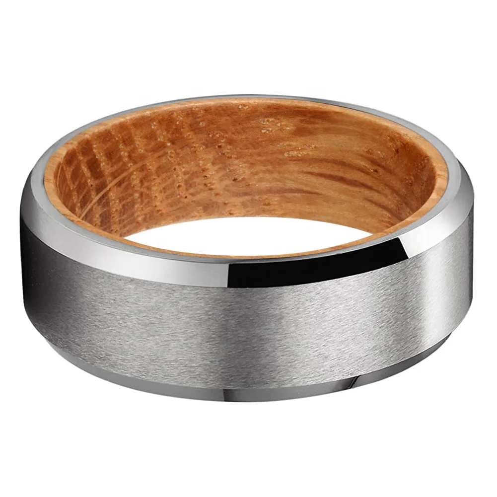 Coolstyle Jewelry Wholesale 8mm Natural Whisky Barrel Oak Wood Inlay Tungsten Ring for Men Women Fashion Engagement Wedding Band