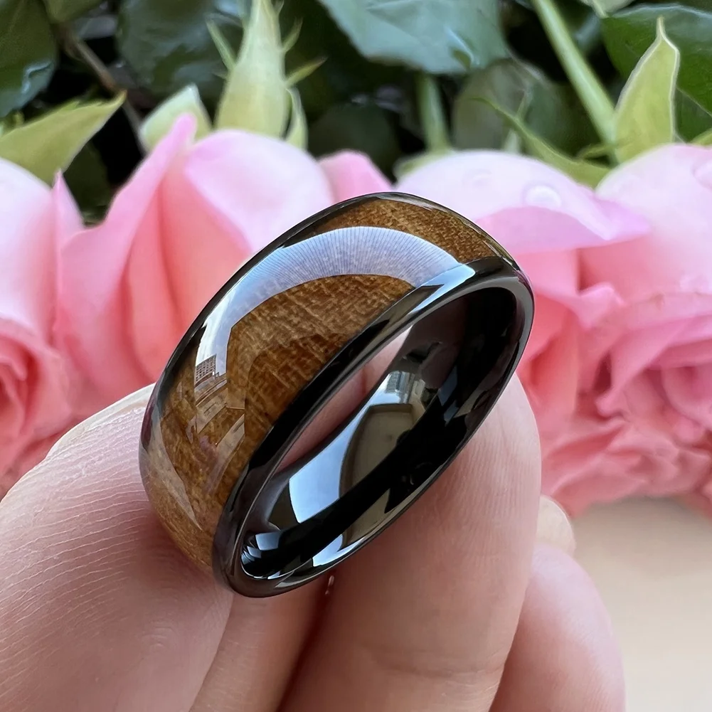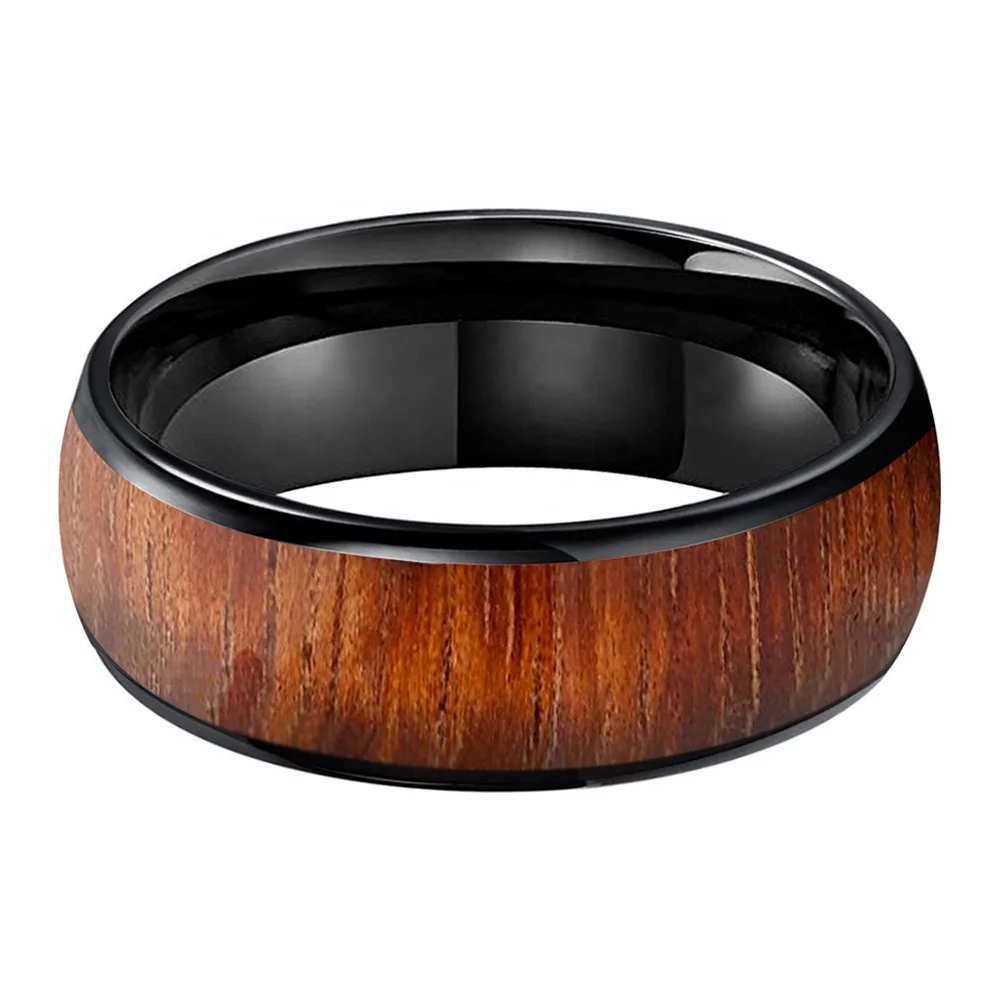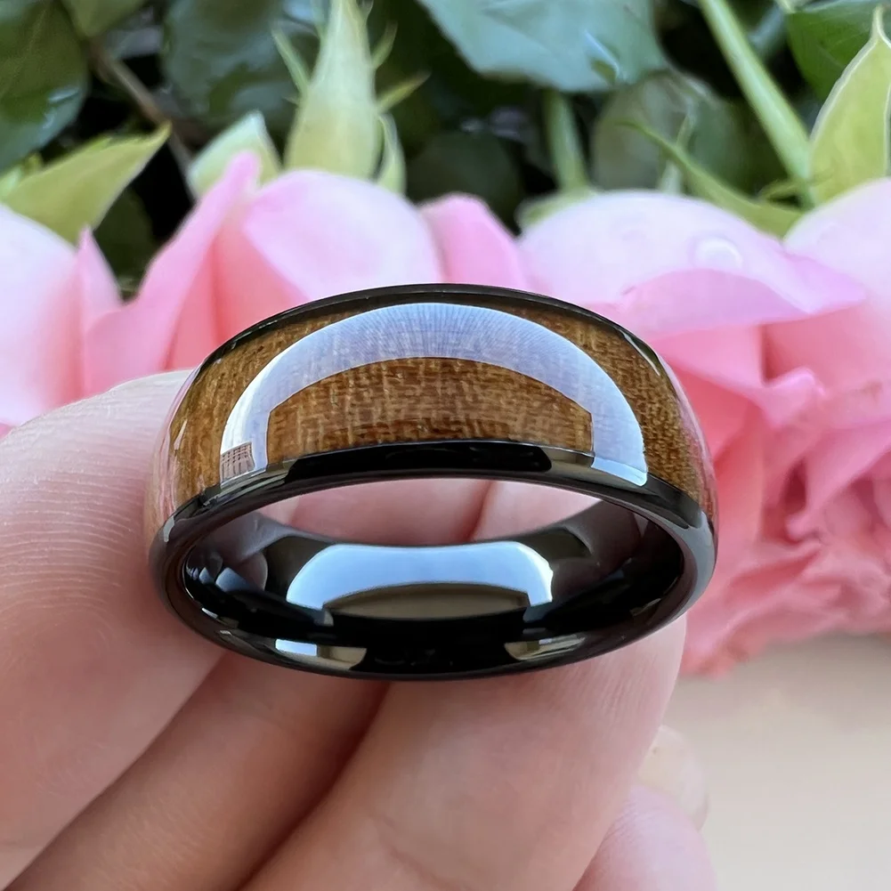 Coolstyle Jewelry 8mm Black Tungsten Finger Ring Men Women Fashion Engagement Wedding Band Koa Wood Inlay Comfort Fit