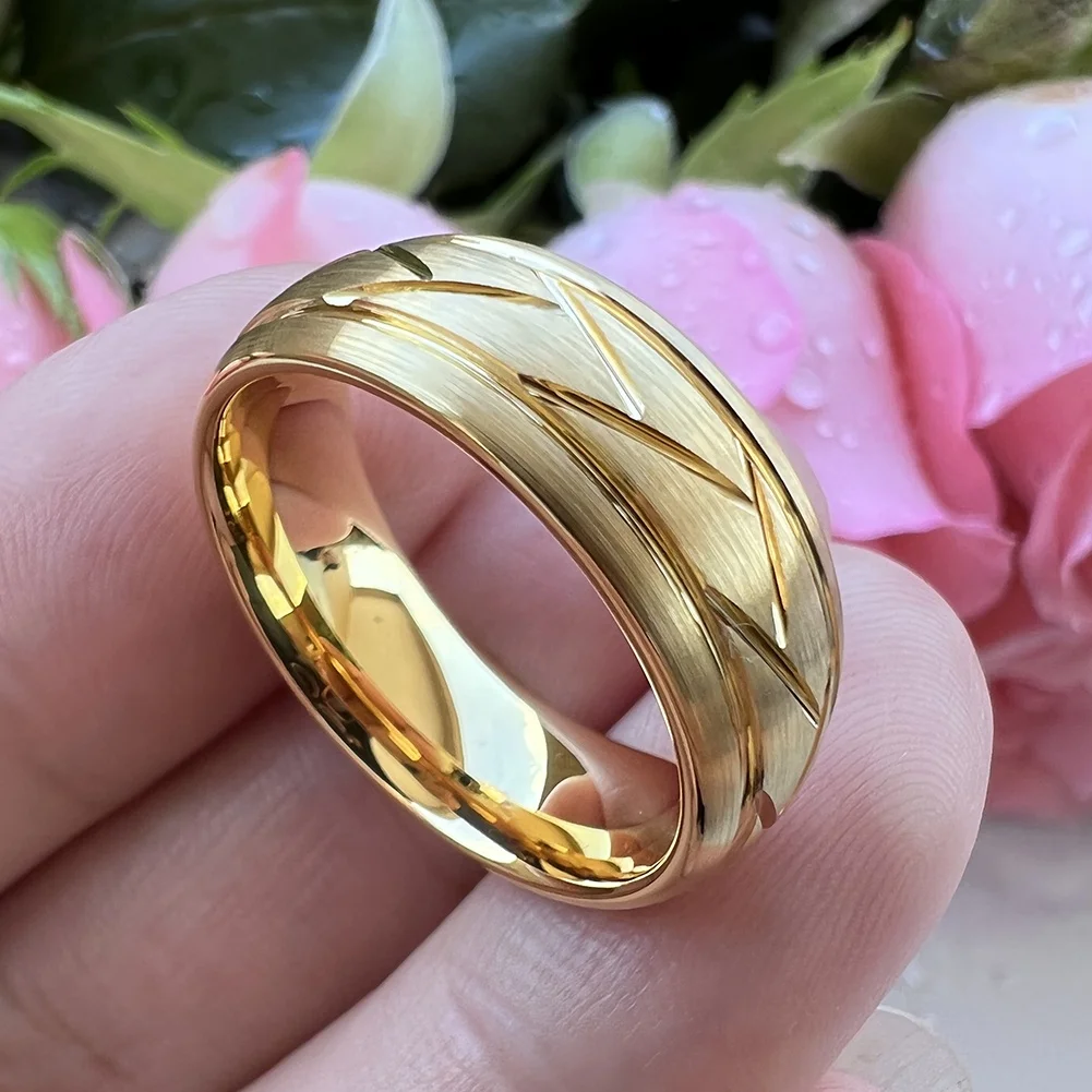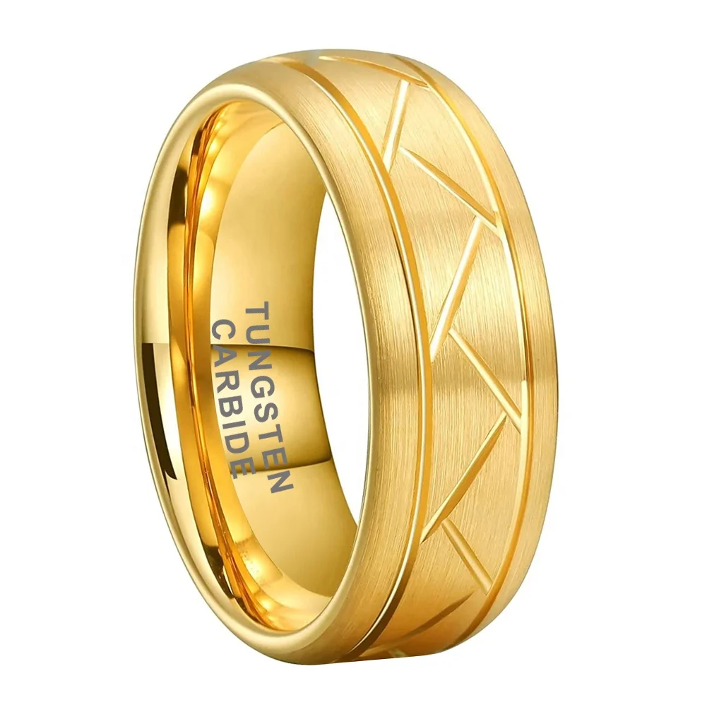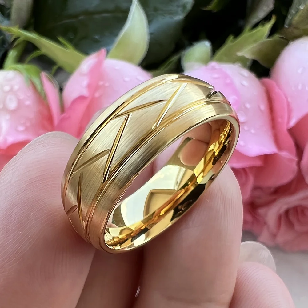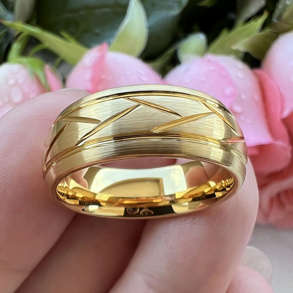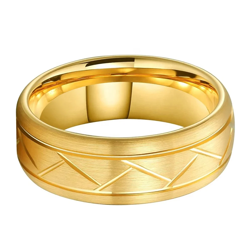 Coolstyle Jewelry Wholesale 8mm Domed Grooved Brushed Gold Tungsten Carbide Ring for Men Women Fashion Wedding Band Comfort Fit