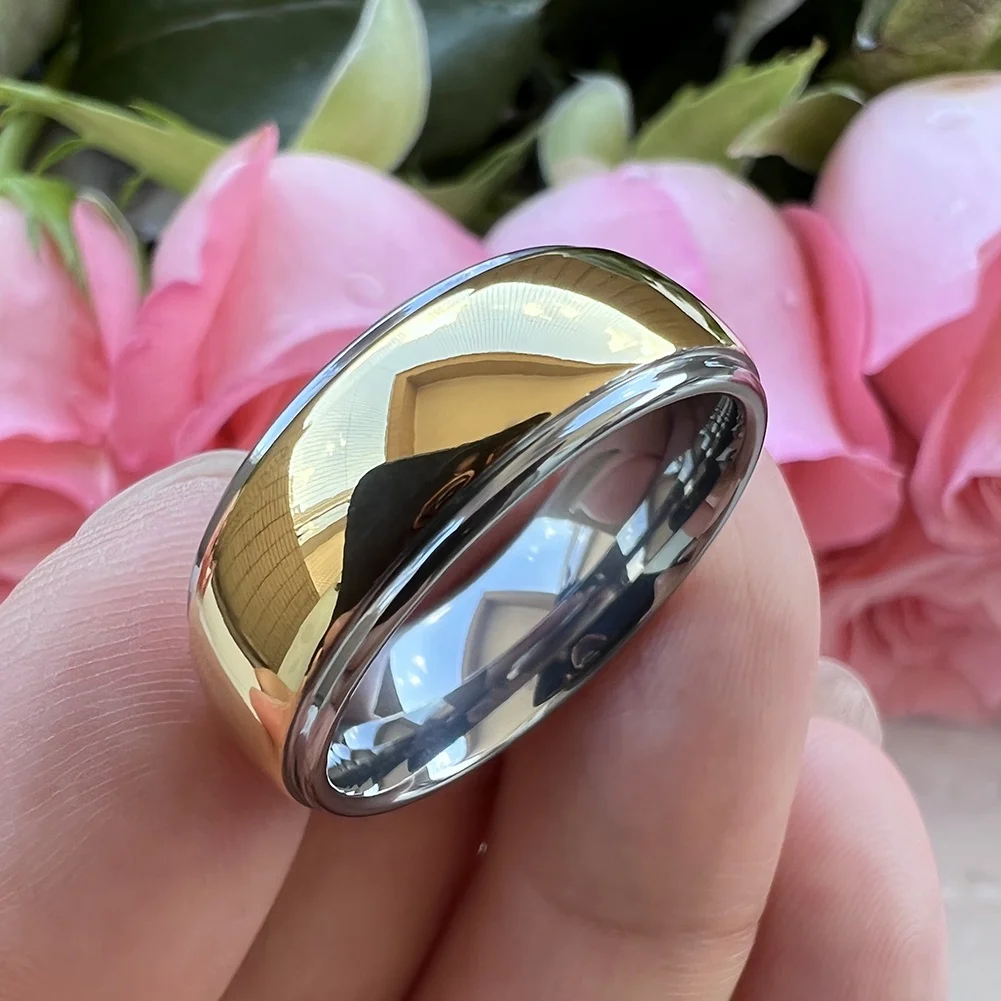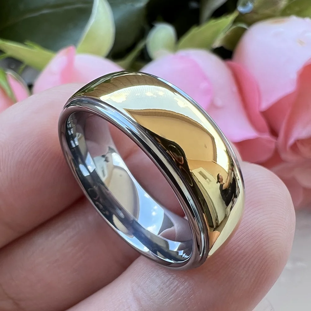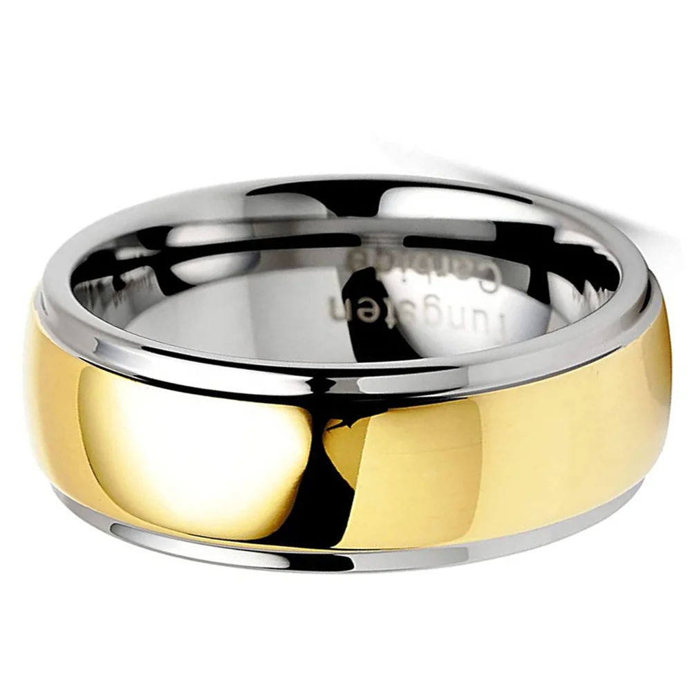 Coolstyle Jewelry 8mm Wholesale Stepped Domed Polished Gold Plated Tungsten Ring for Men Women Fashion Engagement Wedding Band