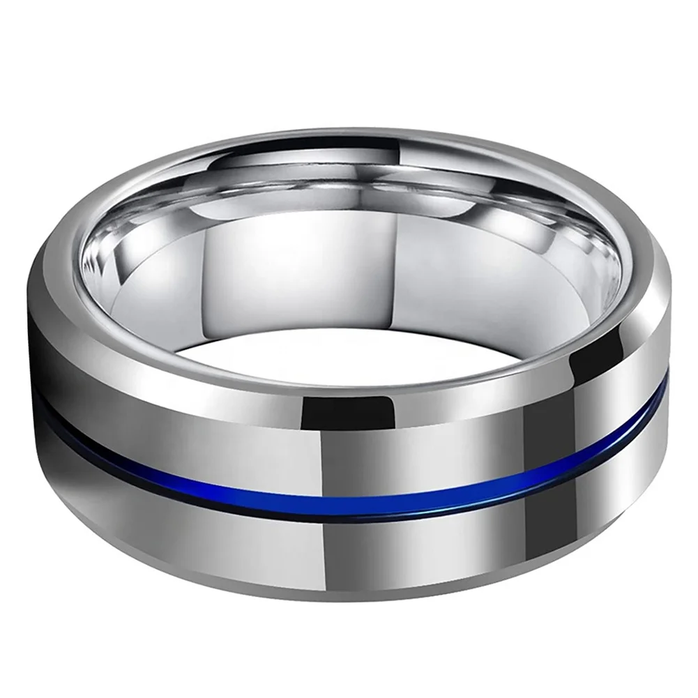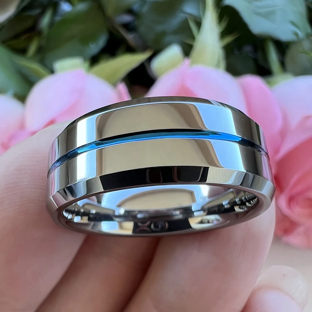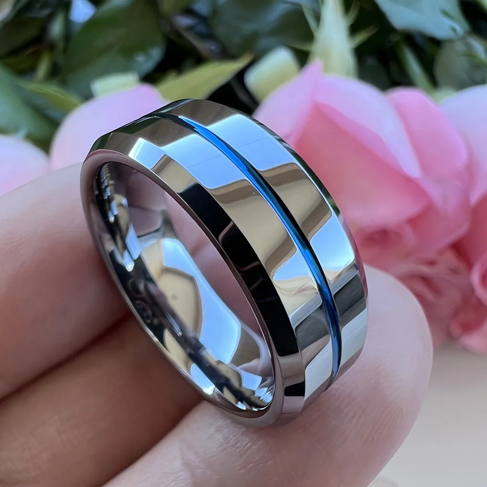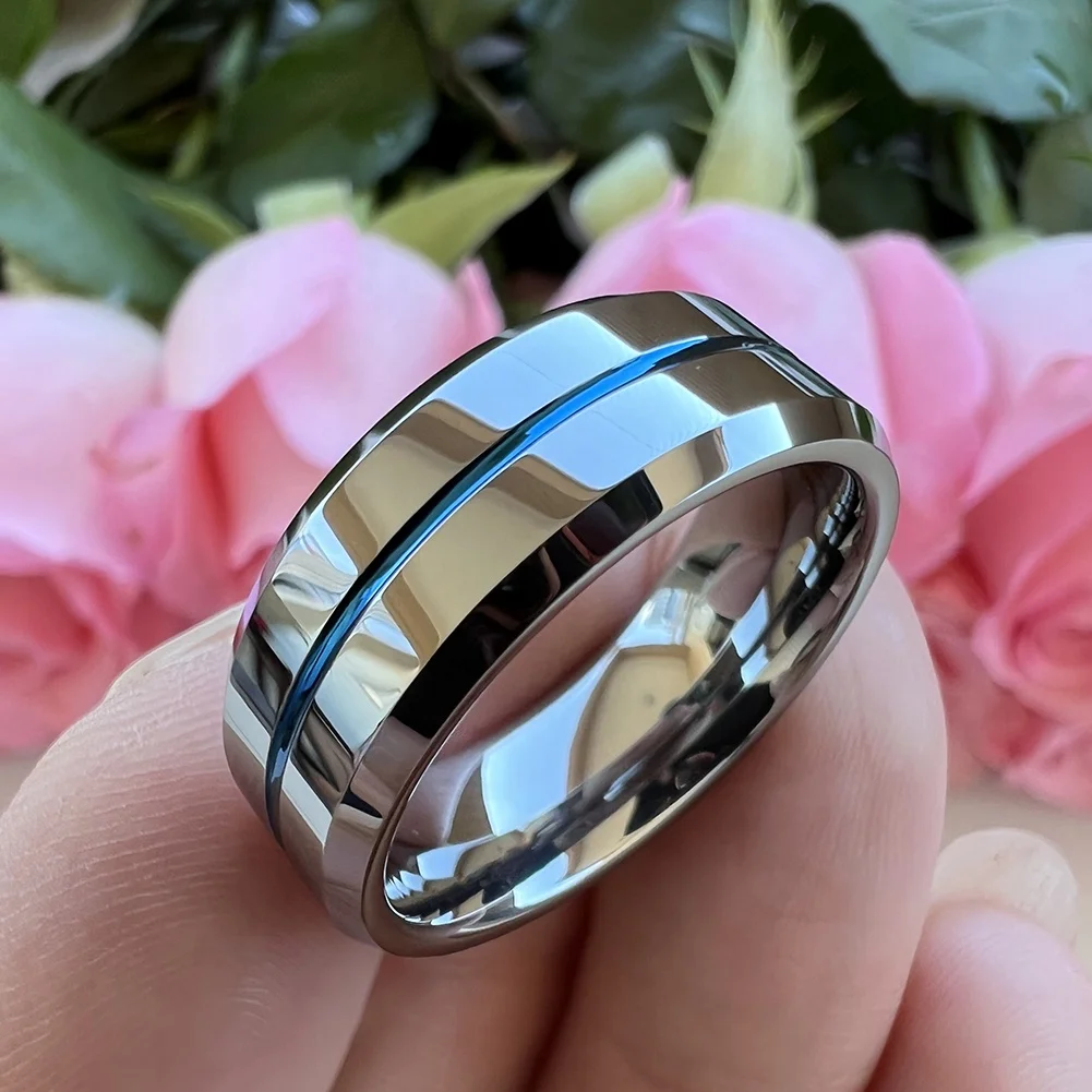 Coolstyle Jewelry 8mm Wholesale Center Line Beveled Edges Tungsten Wedding Band for Men Women Fashion Engagement Finger Rings
