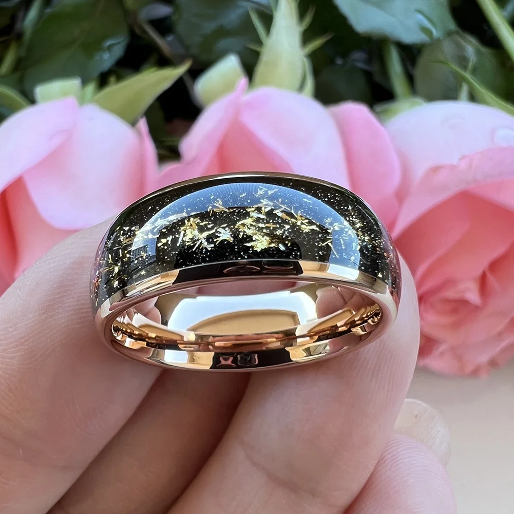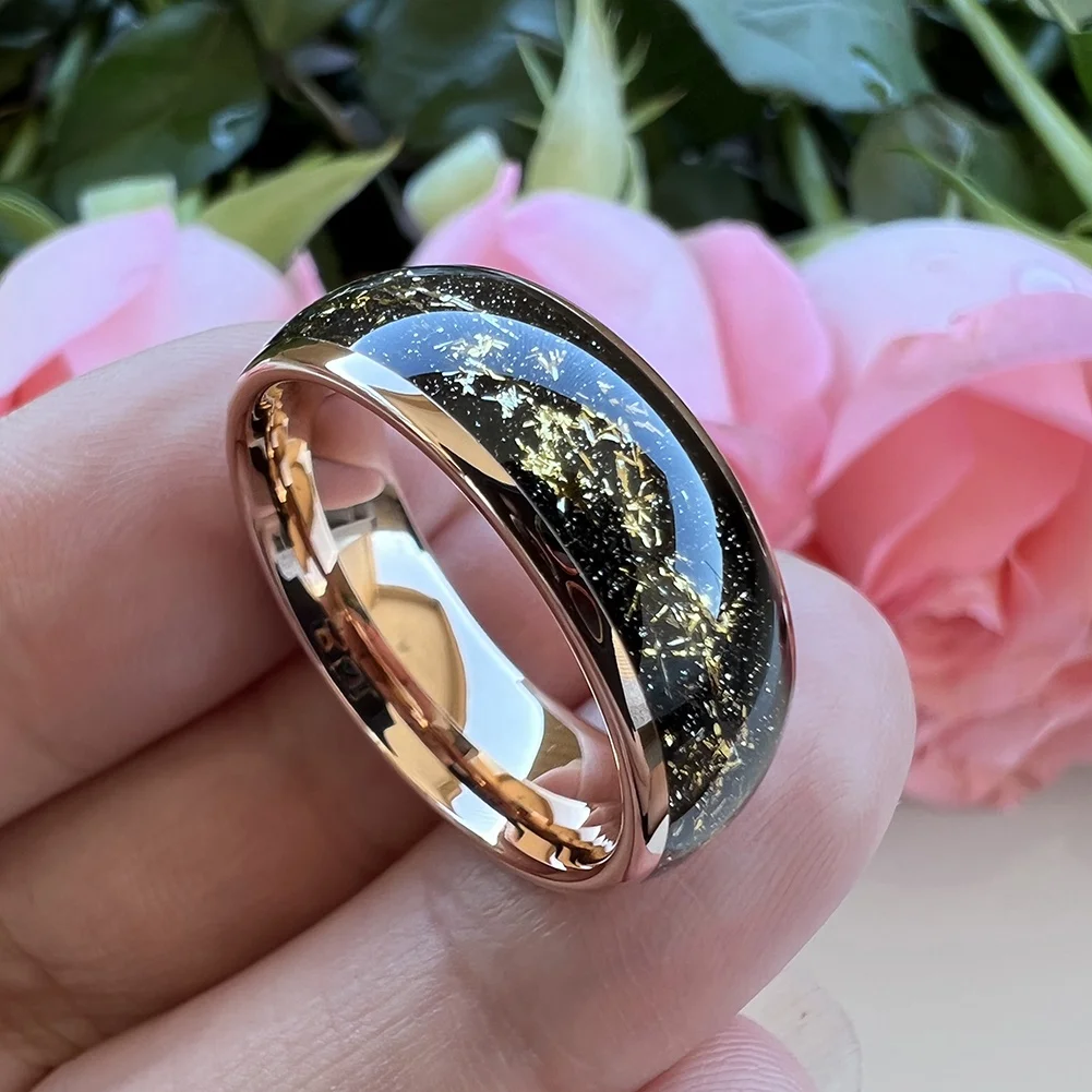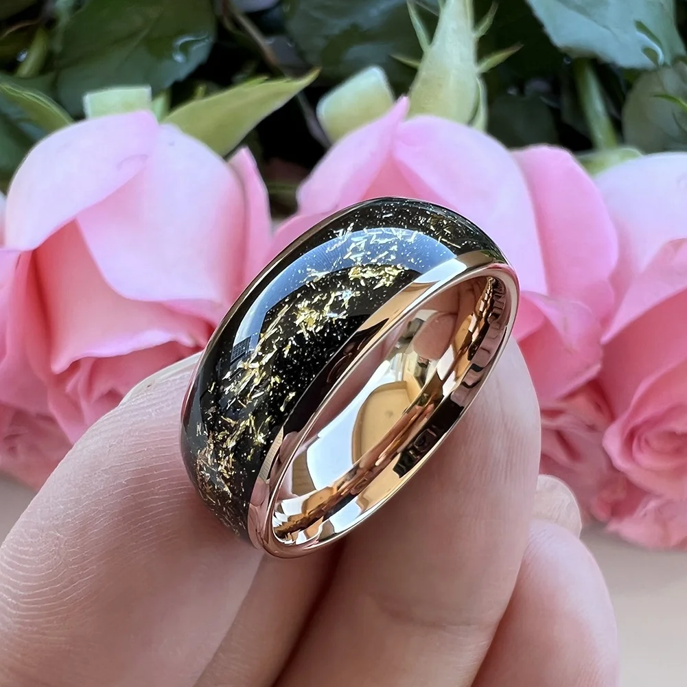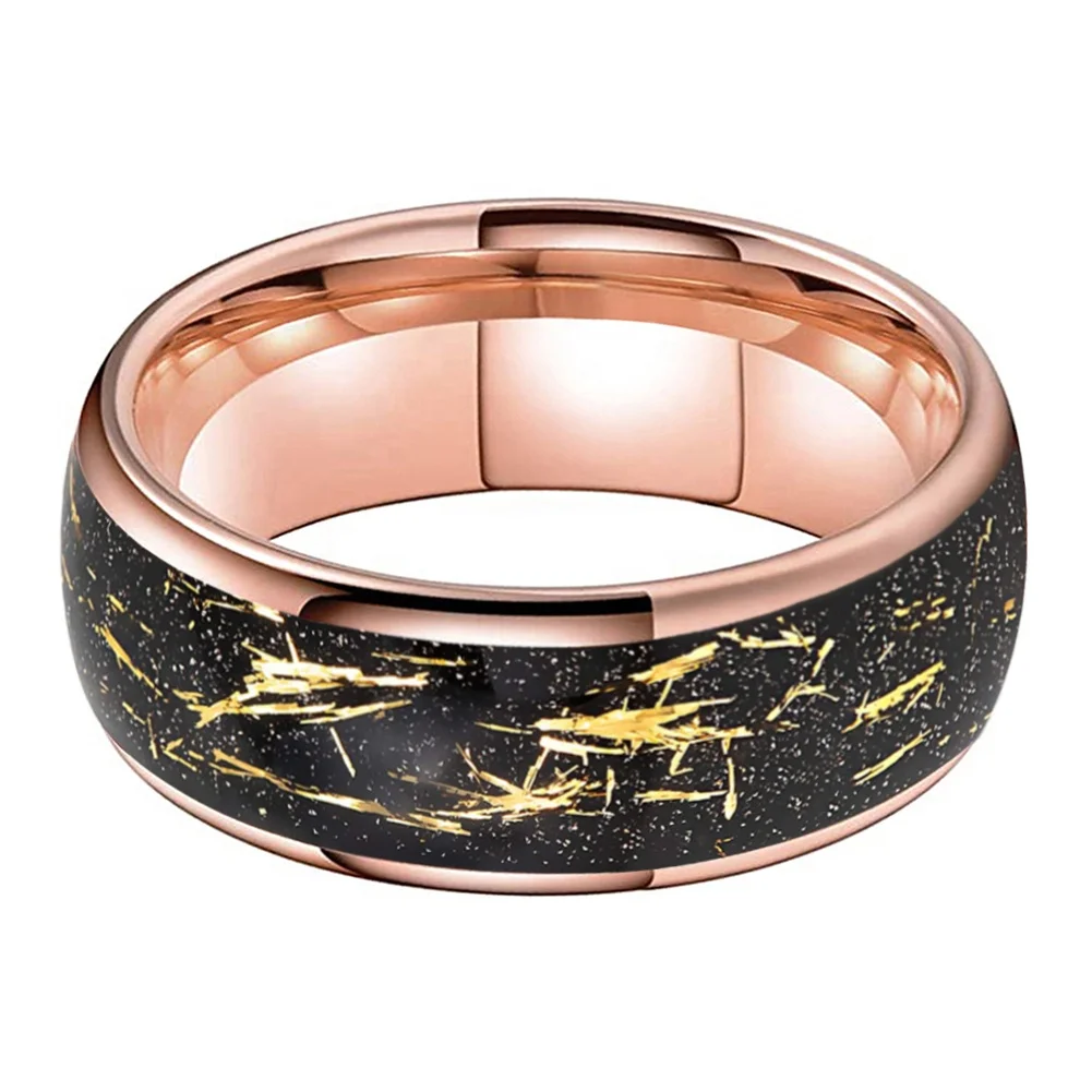 Coolstyle Jewelry 8mm Wholesale Black Sandblasted Stone Gold Foil Inlay Engagement Wedding Band Rose Tungsten Ring Men Women