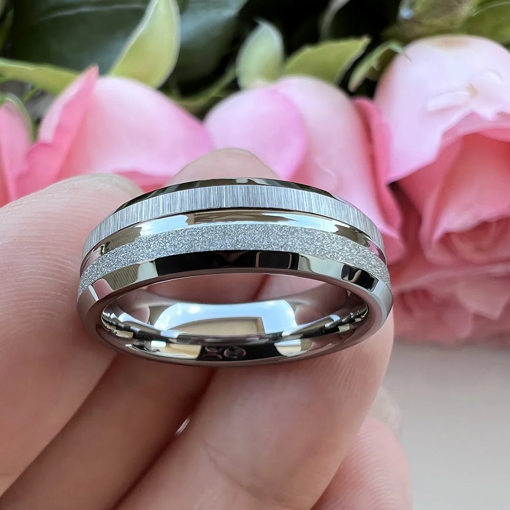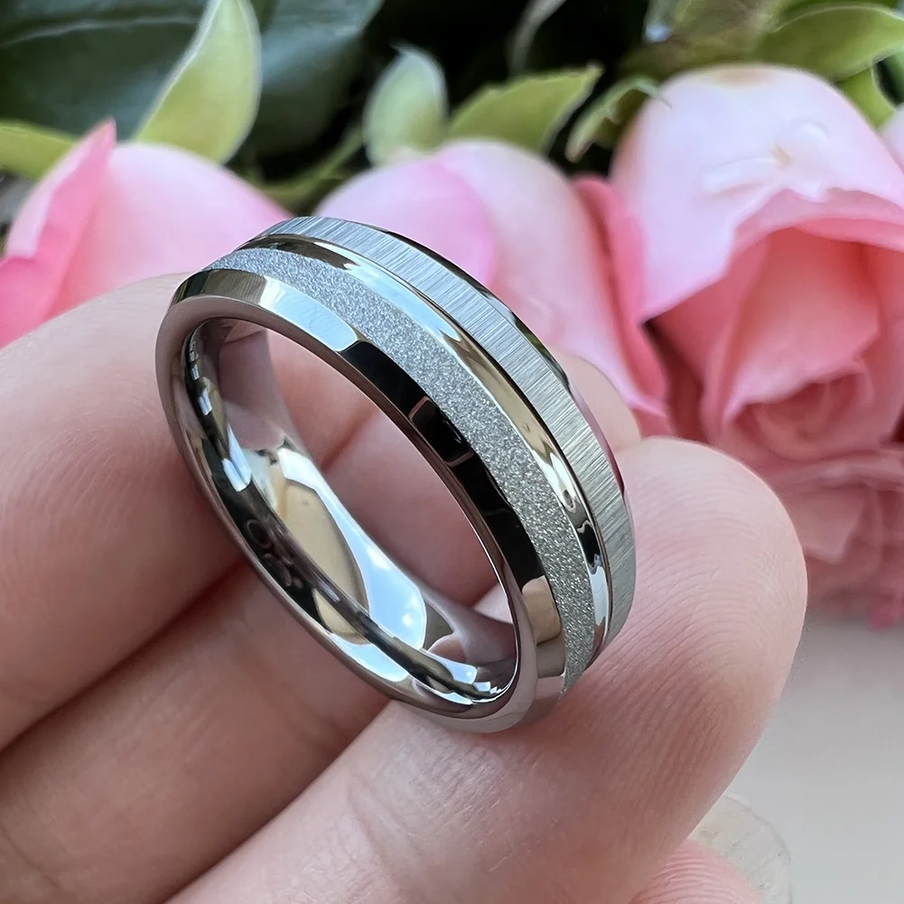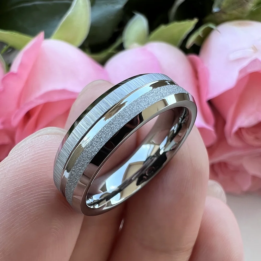 Coolstyle Jewelry 6mm Sandblasted White Tungsten Ring Women Men Trendy Engagement Wedding Band Beveled Edges Comfort Fit