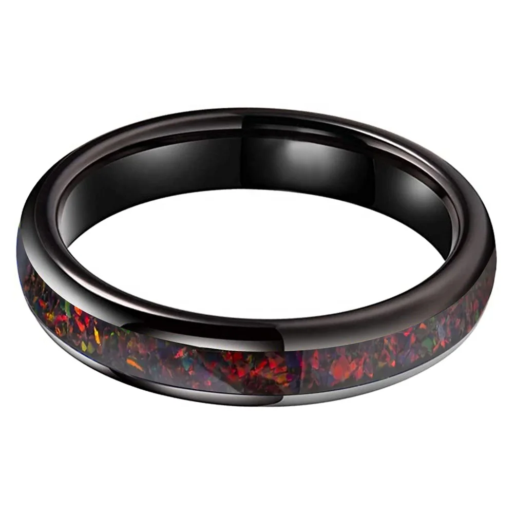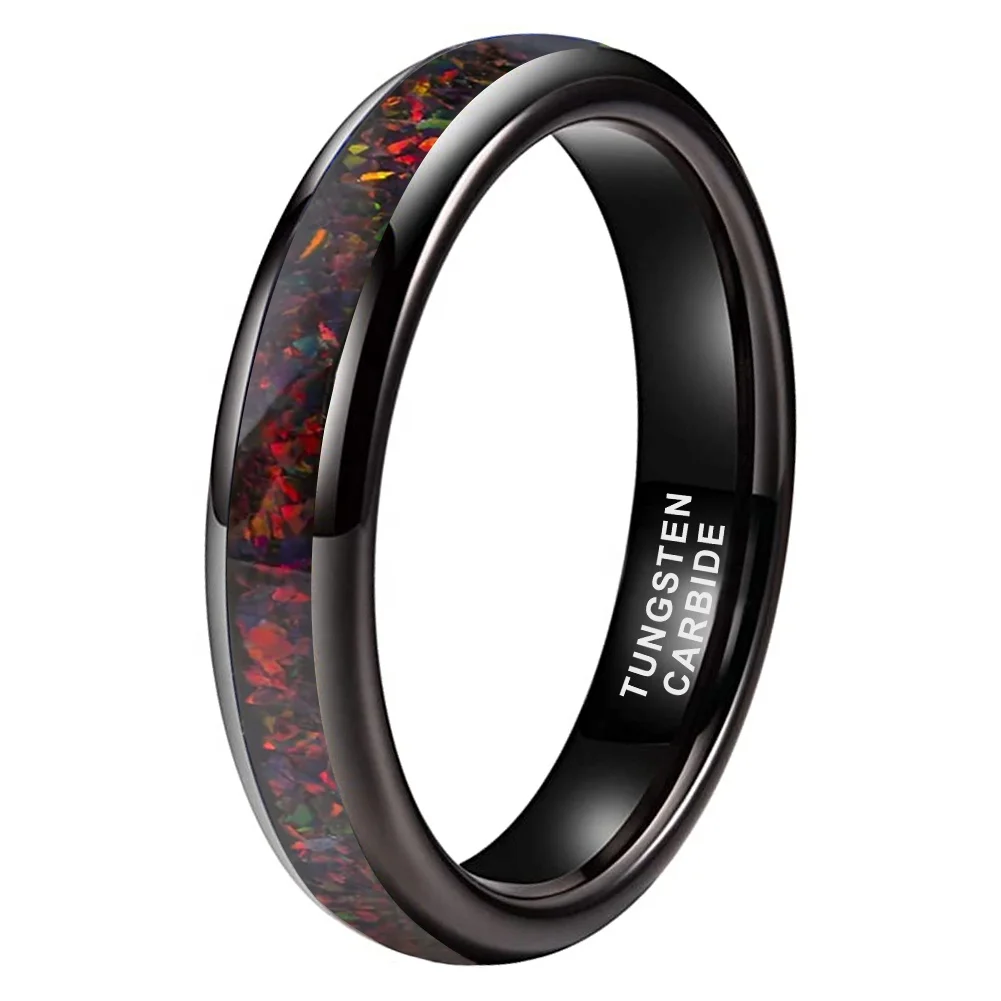 Coolstyle Jewelry 4mm Men Women Trendy Engagement Wedding Band Opal Inlay Black Plated Domed Polished Tungsten Ring Comfort Fit