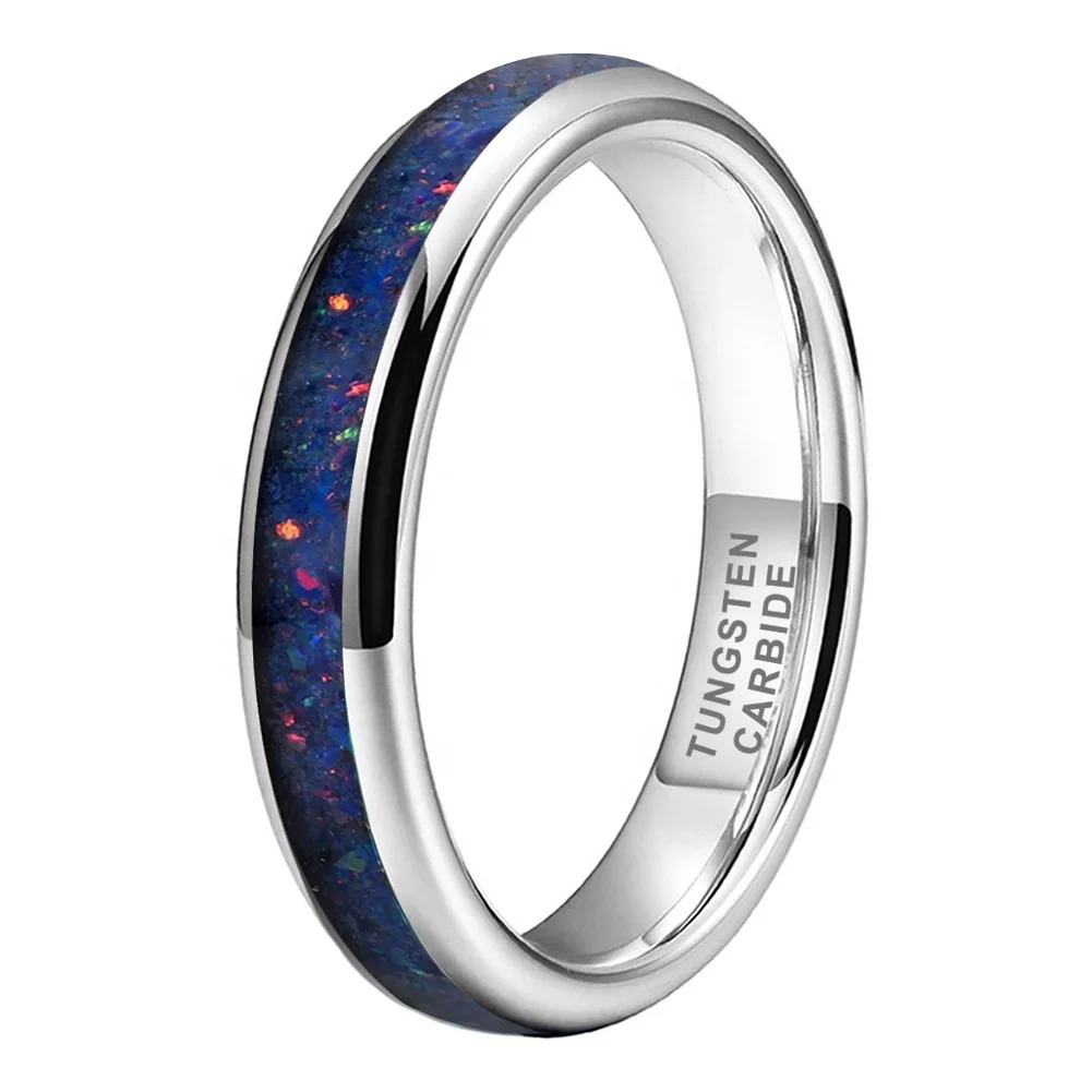 Coolstyle Jewelry 4mm Fashion Jewelry Tungsten Carbide Wedding Band for Men Women Engagemengt Ring Blue Opal Inlay Polished