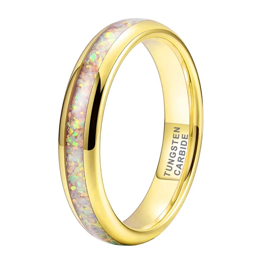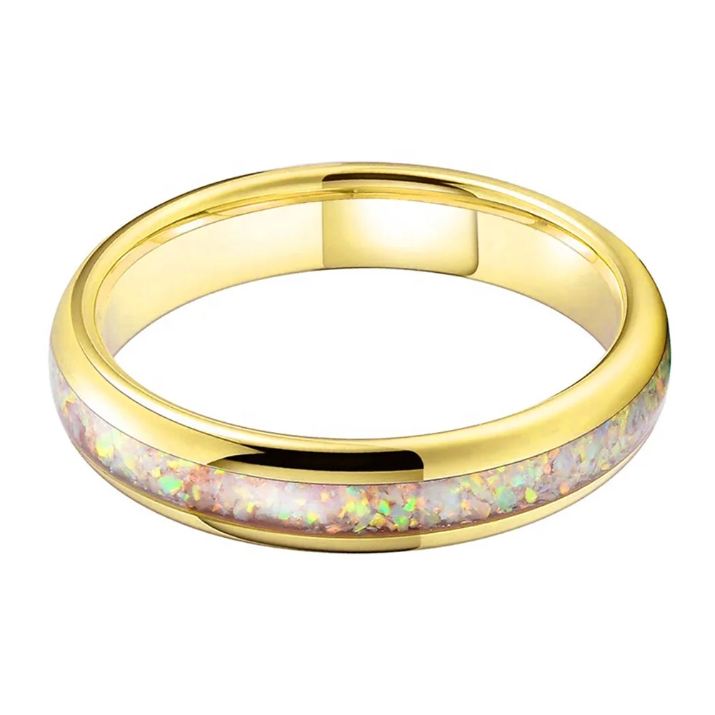 Coolstyle Jewelry Wholesale 4mm Gold Tungsten Ring for Men Women Genuine Opal Inlay Fashion Jewelry Engagement Wedding Band