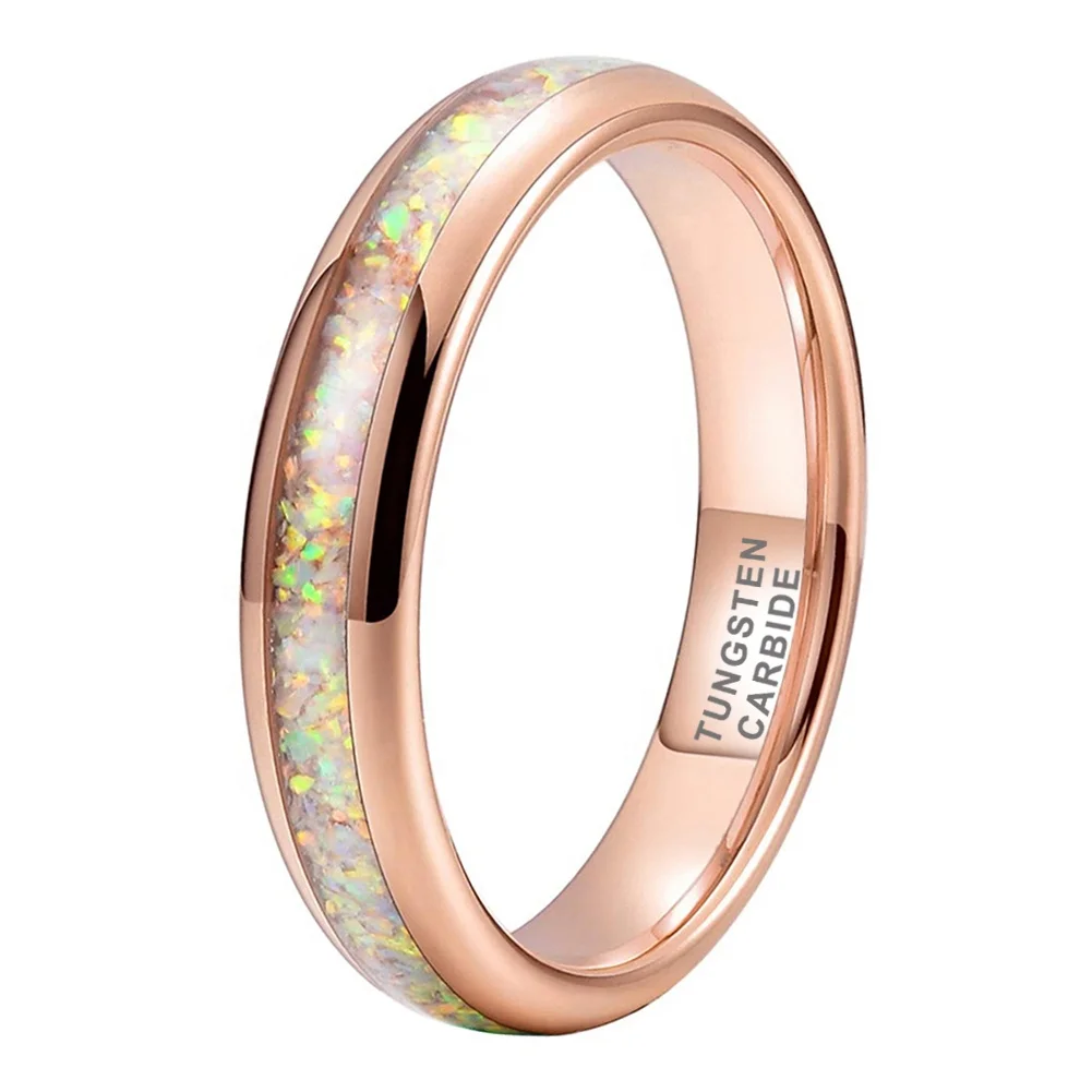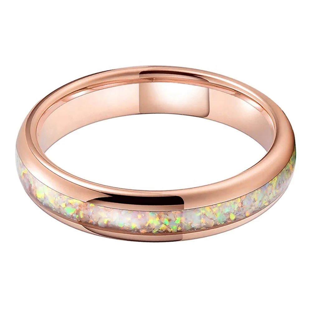 Coolstyle Jewelry Wholesale 4mm Rose Gold Tungsten Ring for Men Women Genuine Opal Inlay Fashion Jewelry Engagement Wedding Band