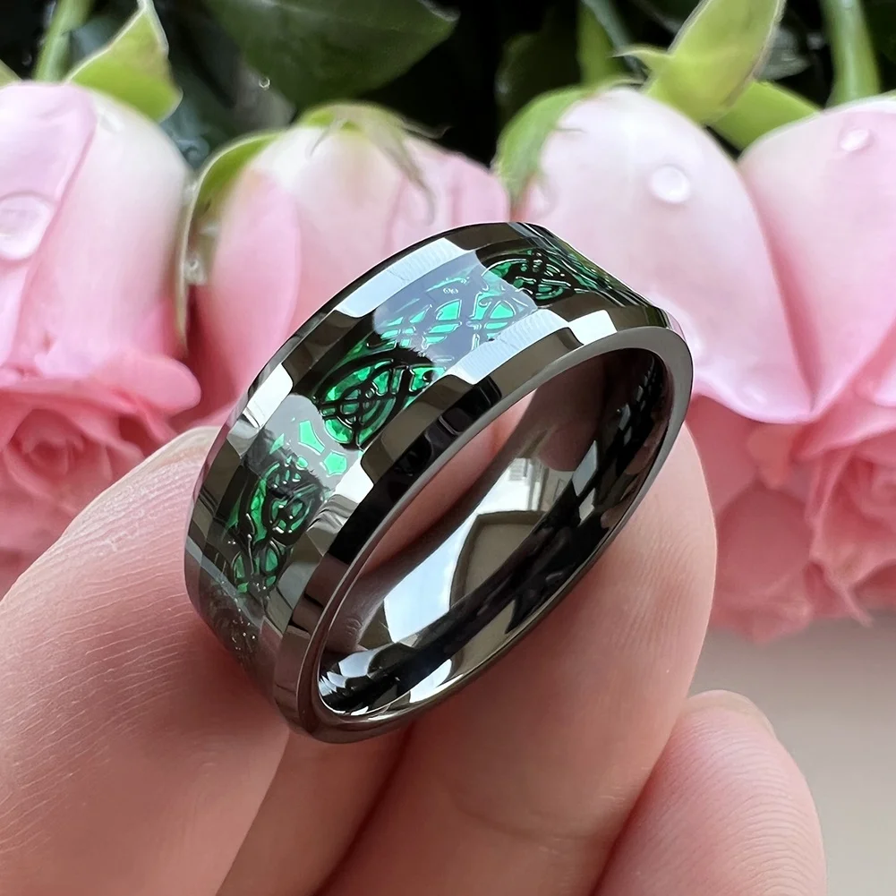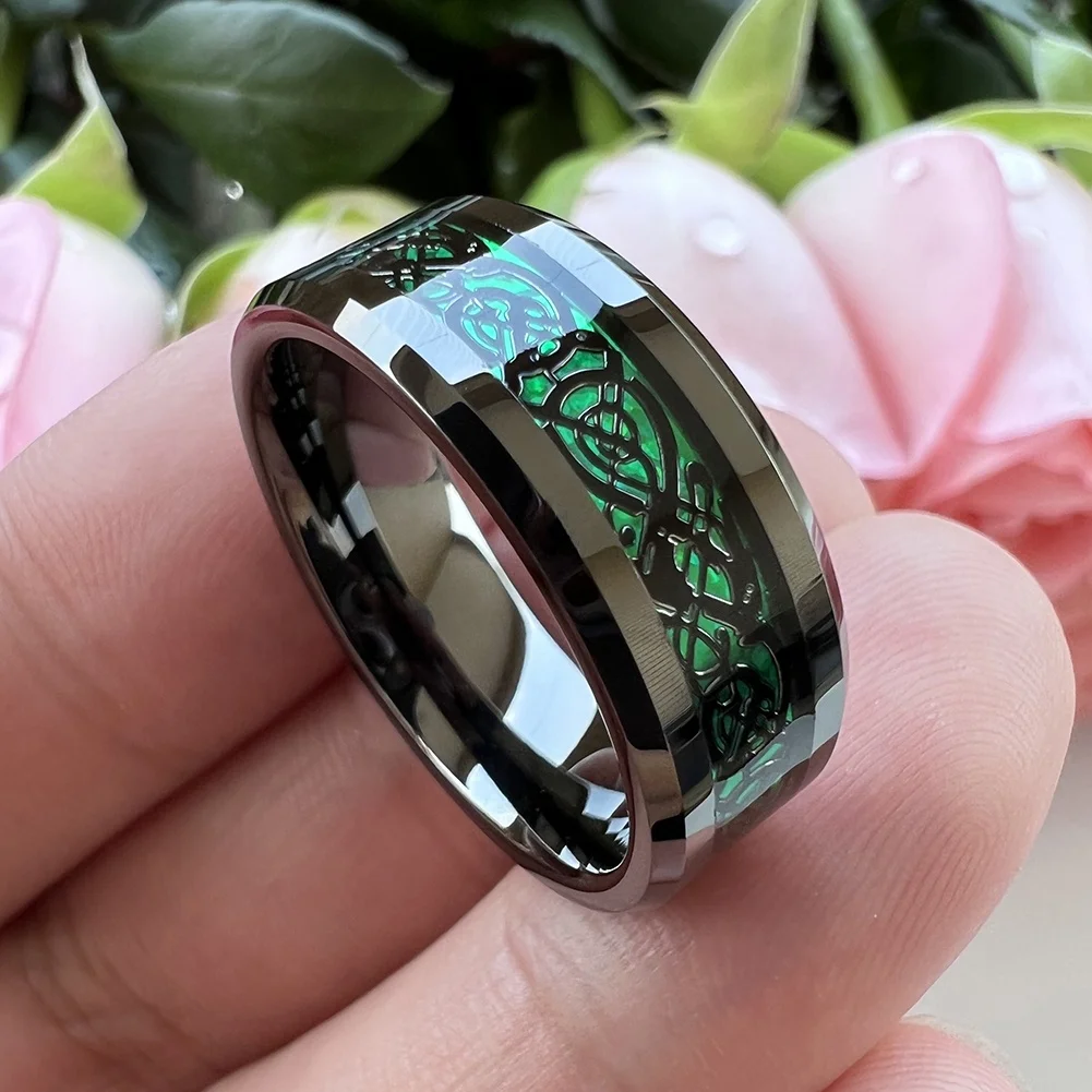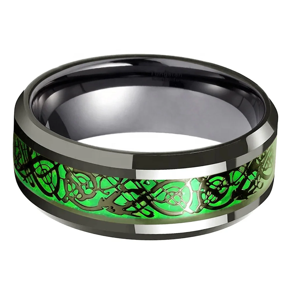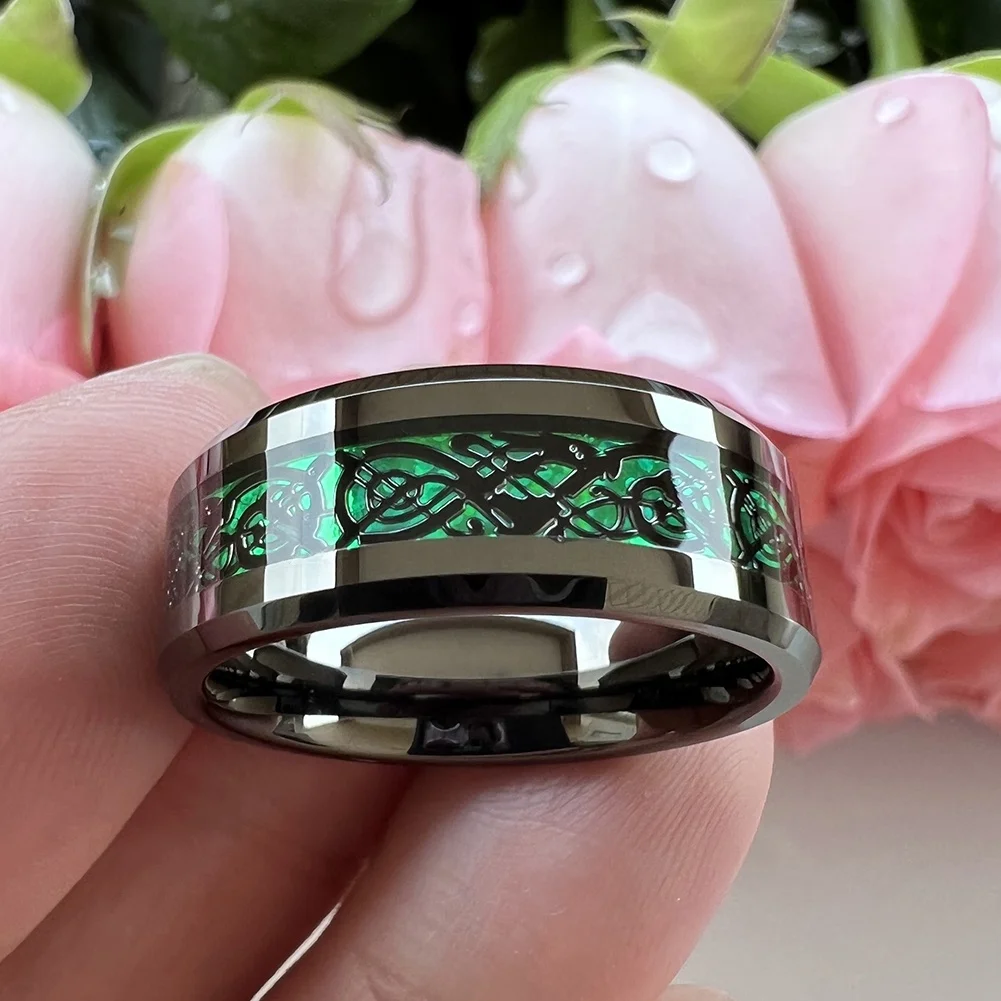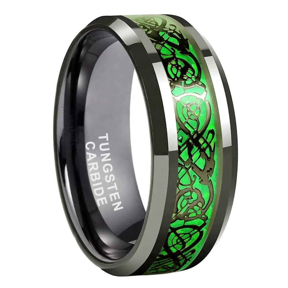 Coolstyle Jewelry 8mm Green Carbon Fiber Dragon Inlay Gunmetal Tungsten Wedding Band for Men Women Wholesale Fashion Rings
