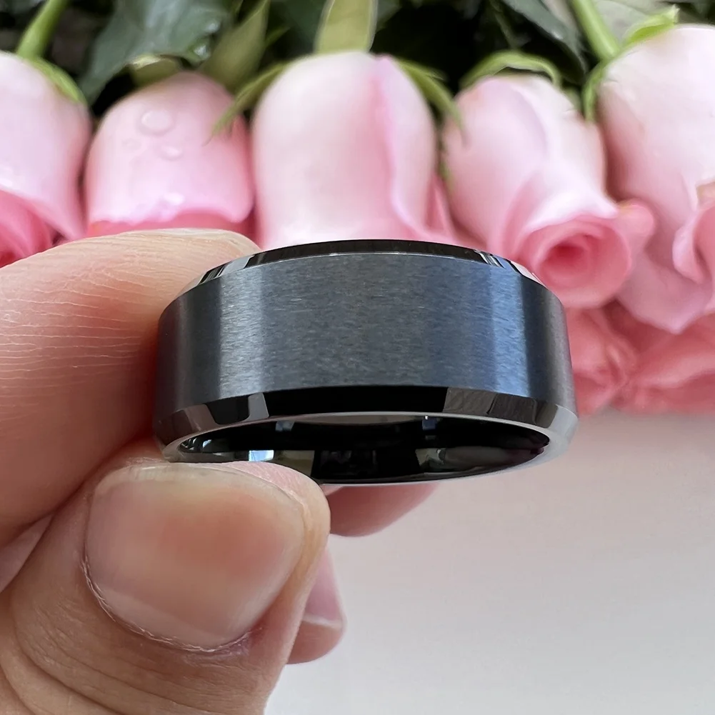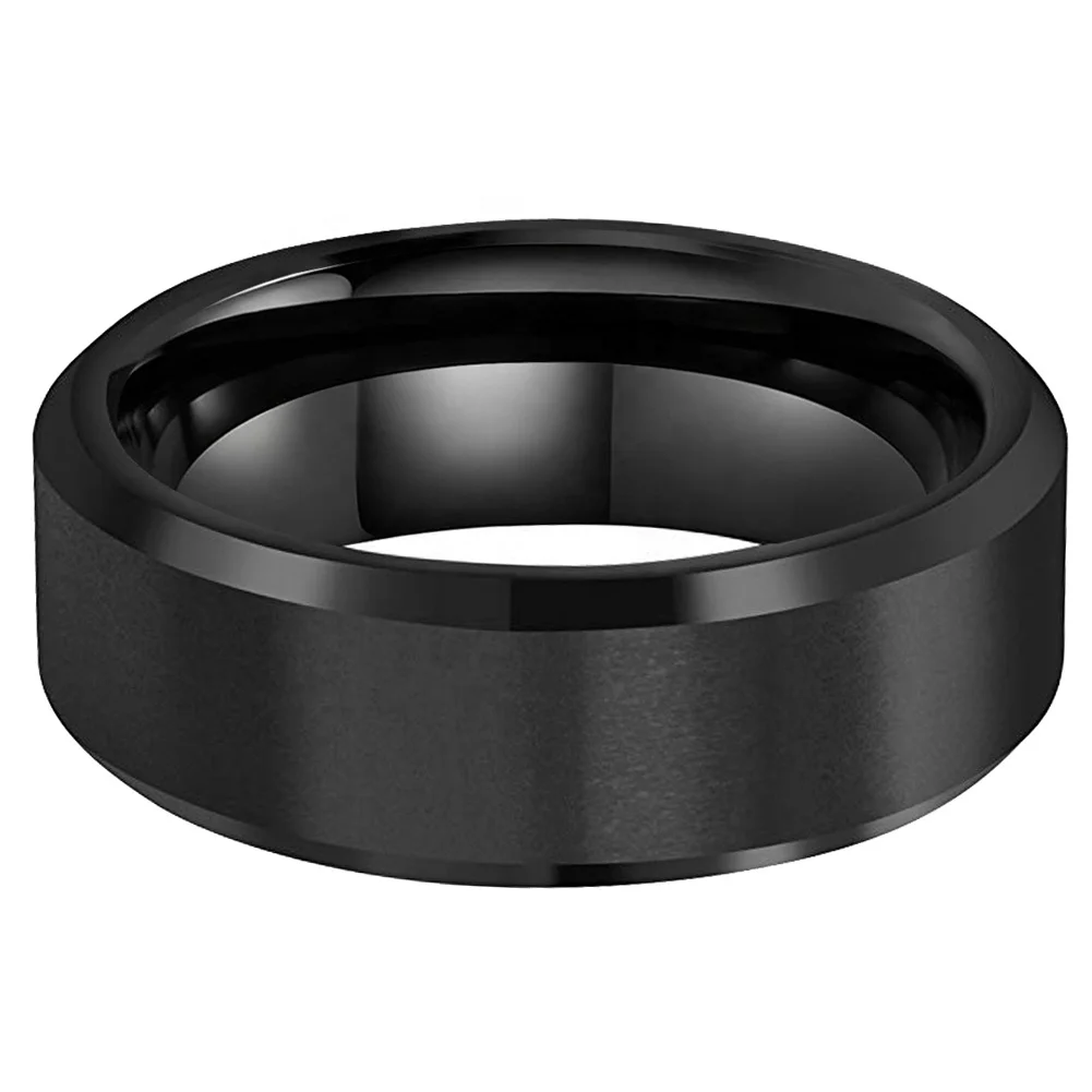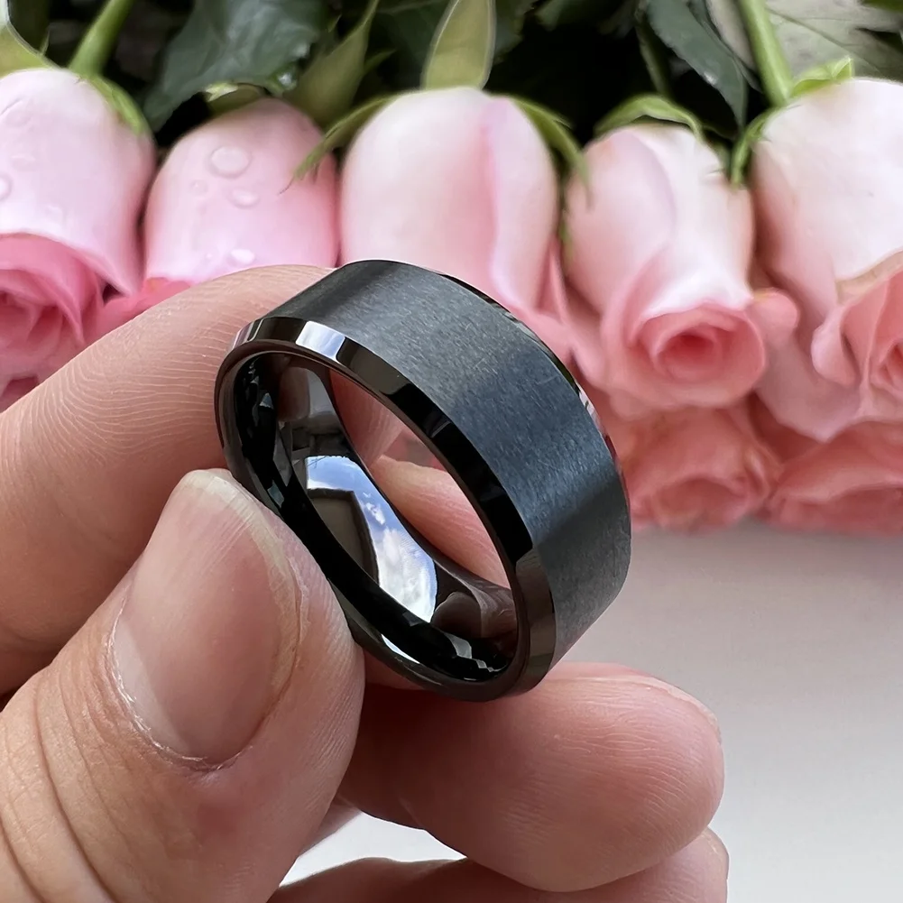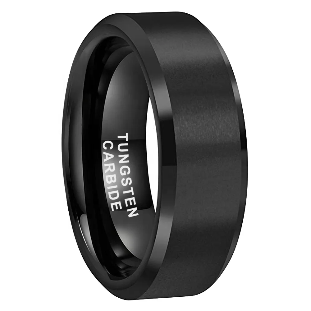 Coolstyle Jewelry 8mm Wholesale Beveled Matte Finish Fashion Engagement Wedding Band Black Tungsten Carbide Ring for Men Women
