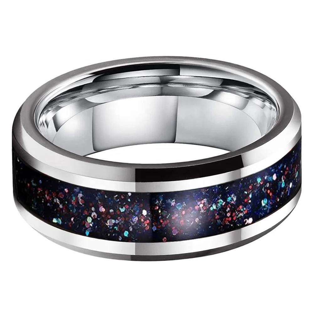 8mm Wholesale Factory Mens Womens Fashion Wedding Band Colorful Flowing Sand Inlay Beveled Polished Shiny Tungsten Carbide Rings