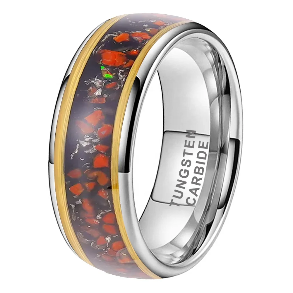 Coolstyle Jewelry Wholesale 8mm Tungsten Rings for Men Women Meteorite Opal Red Turquoise Inlay Fashion Engagement Wedding Band