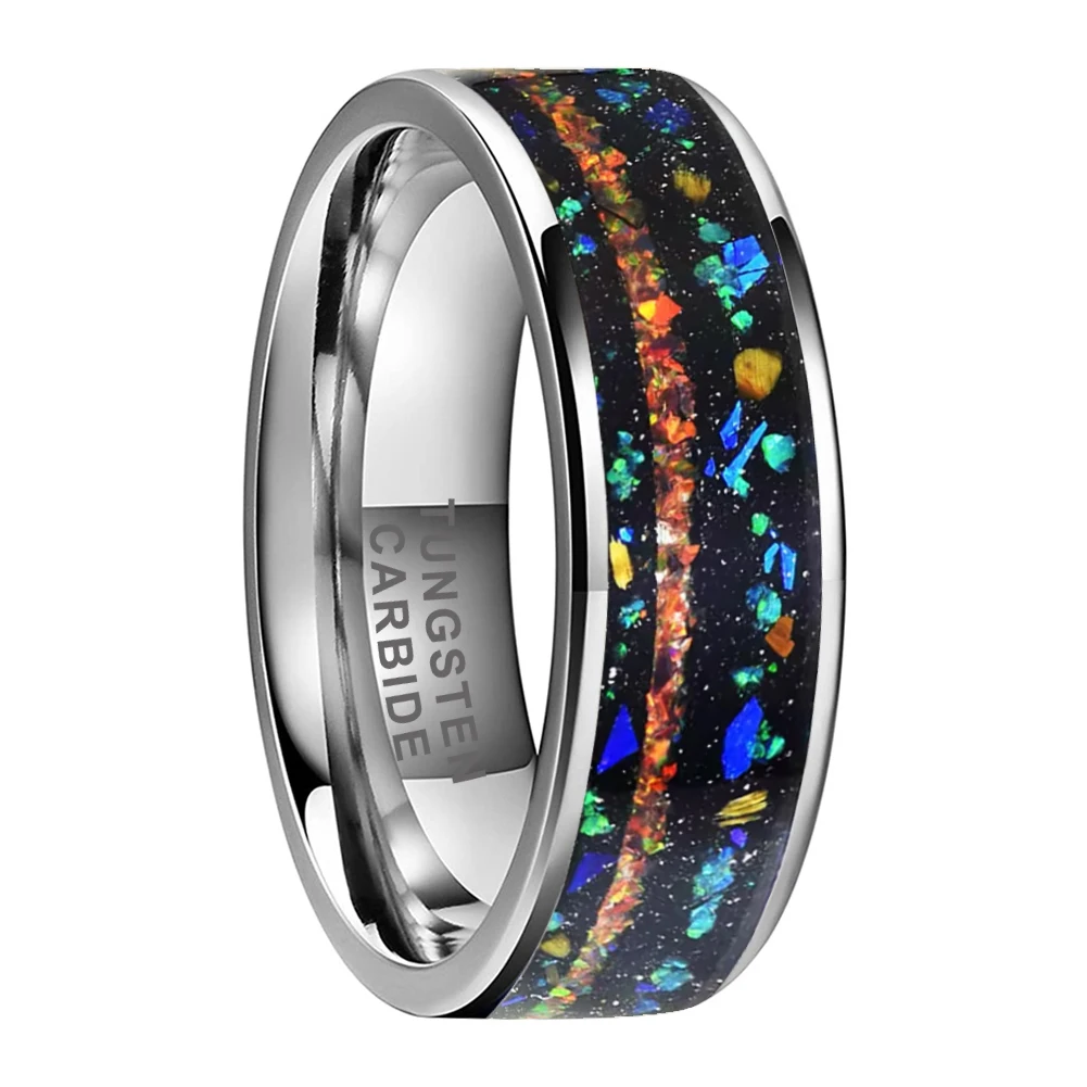 Coolstyle Jewelry 8mm Mens Fashion Jewelry Engagement Wedding Band Colorful Opal Inlay Tungsten Carbide Rings