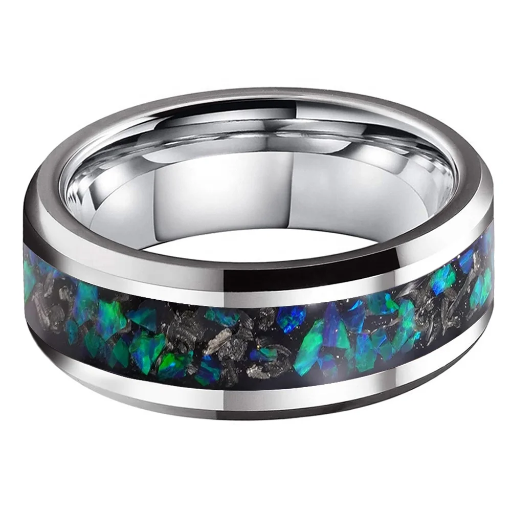 Coolstyle Jewelry 8mm Mens Womens Fashion Engagement Wedding Band Genuine Meteorite Opal Inlay Tungsten Carbide Rings