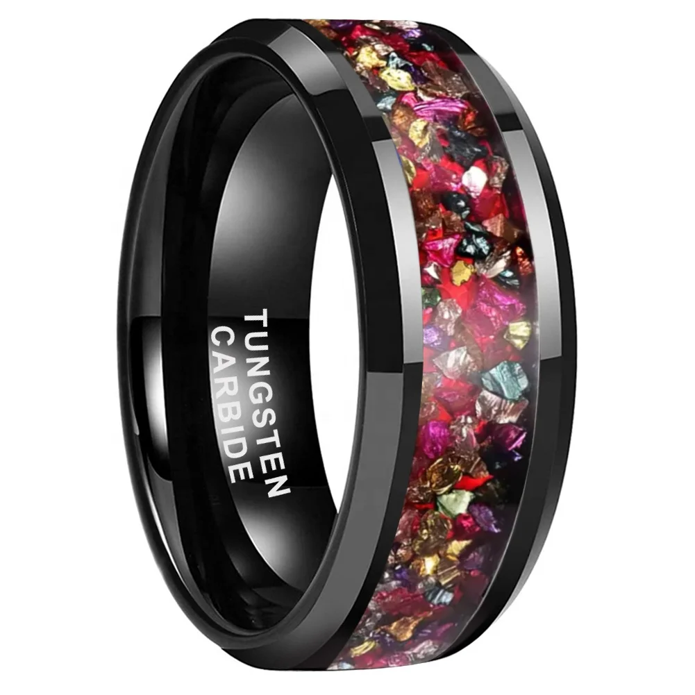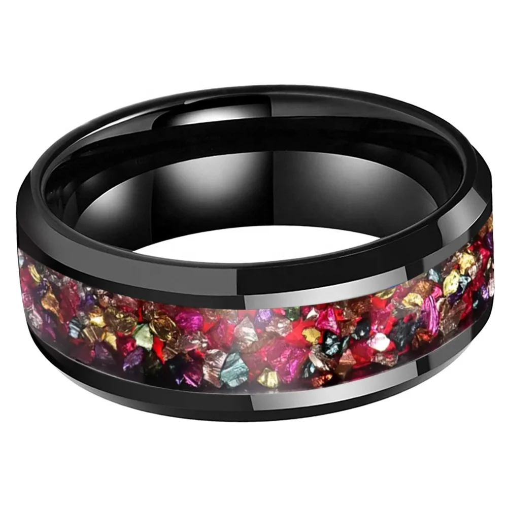 Coolstyle Jewelry 8mm Mens Womens Fashion Engagement Wedding Band Colorful Imitated Agate Chip Inlay Tungsten Carbide Ring