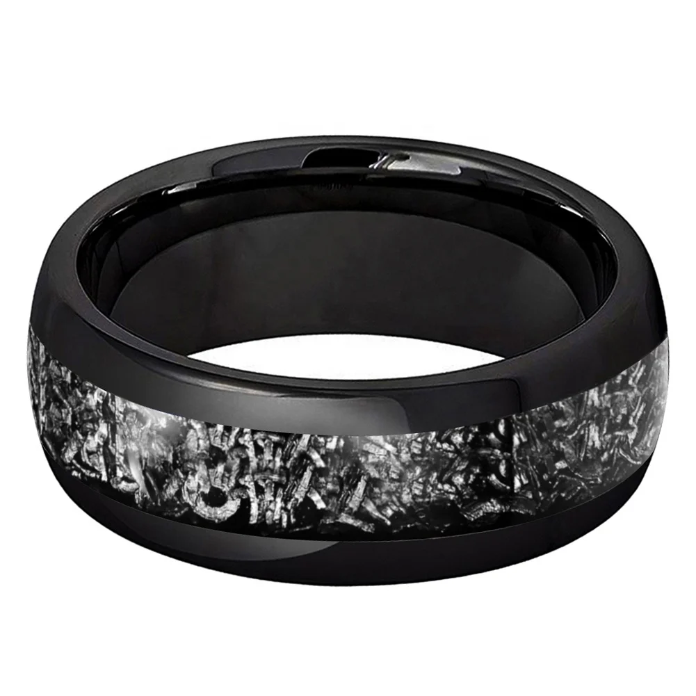 Coolstyle Jewelry 8mm Fashion Jewelry Engagement Wedding Band for Men Women Imitated Meteorite Chip Inlay Black Tungsten Ring