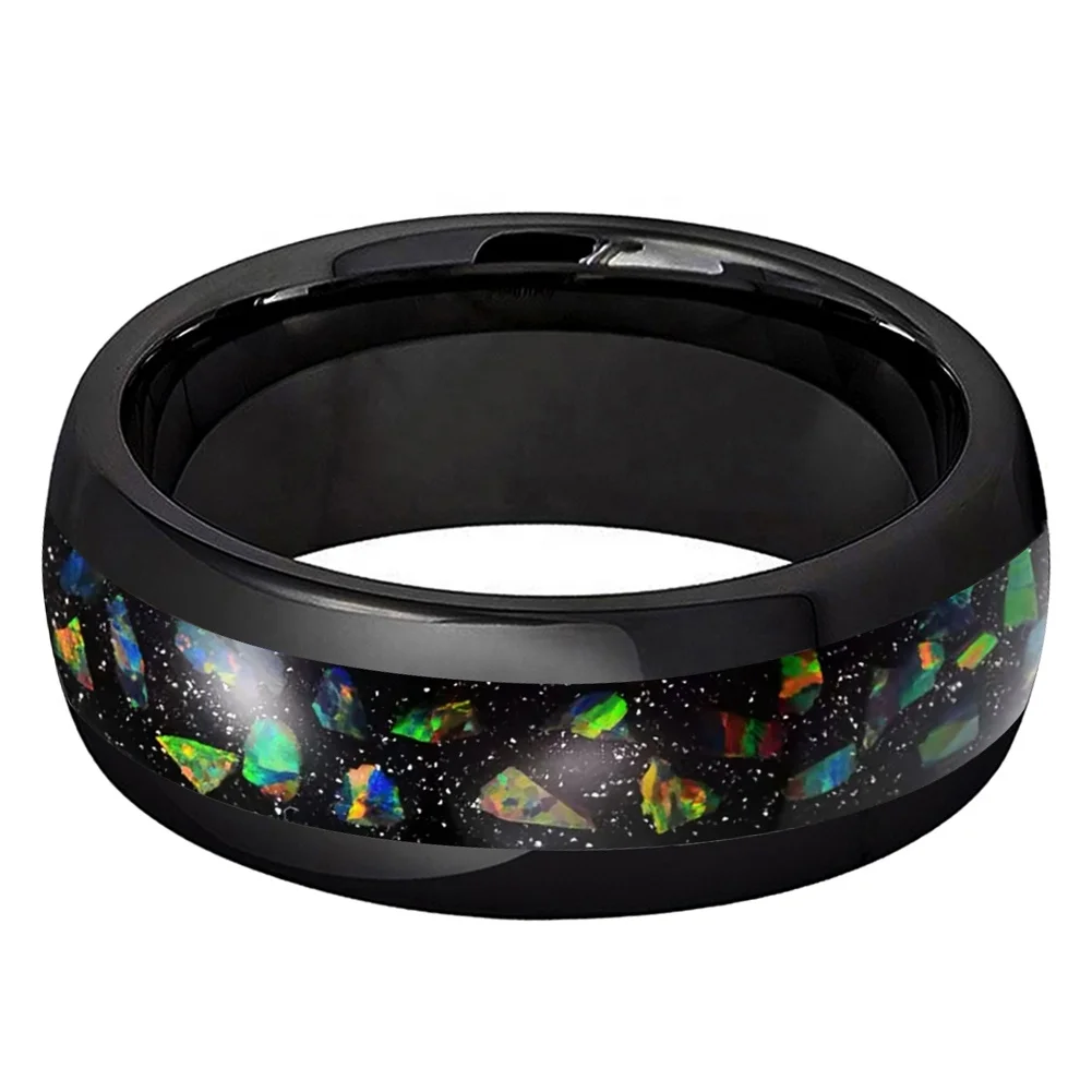 Coolstyle Jewelry 8mm Engagement Wedding Band for Men Women Colorful Opal Chip Inlay Black Tungsten Carbdie Ring