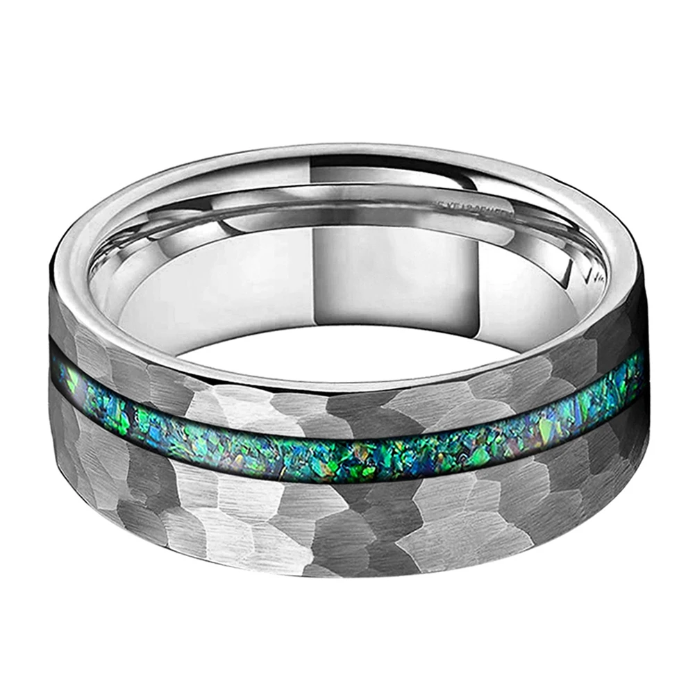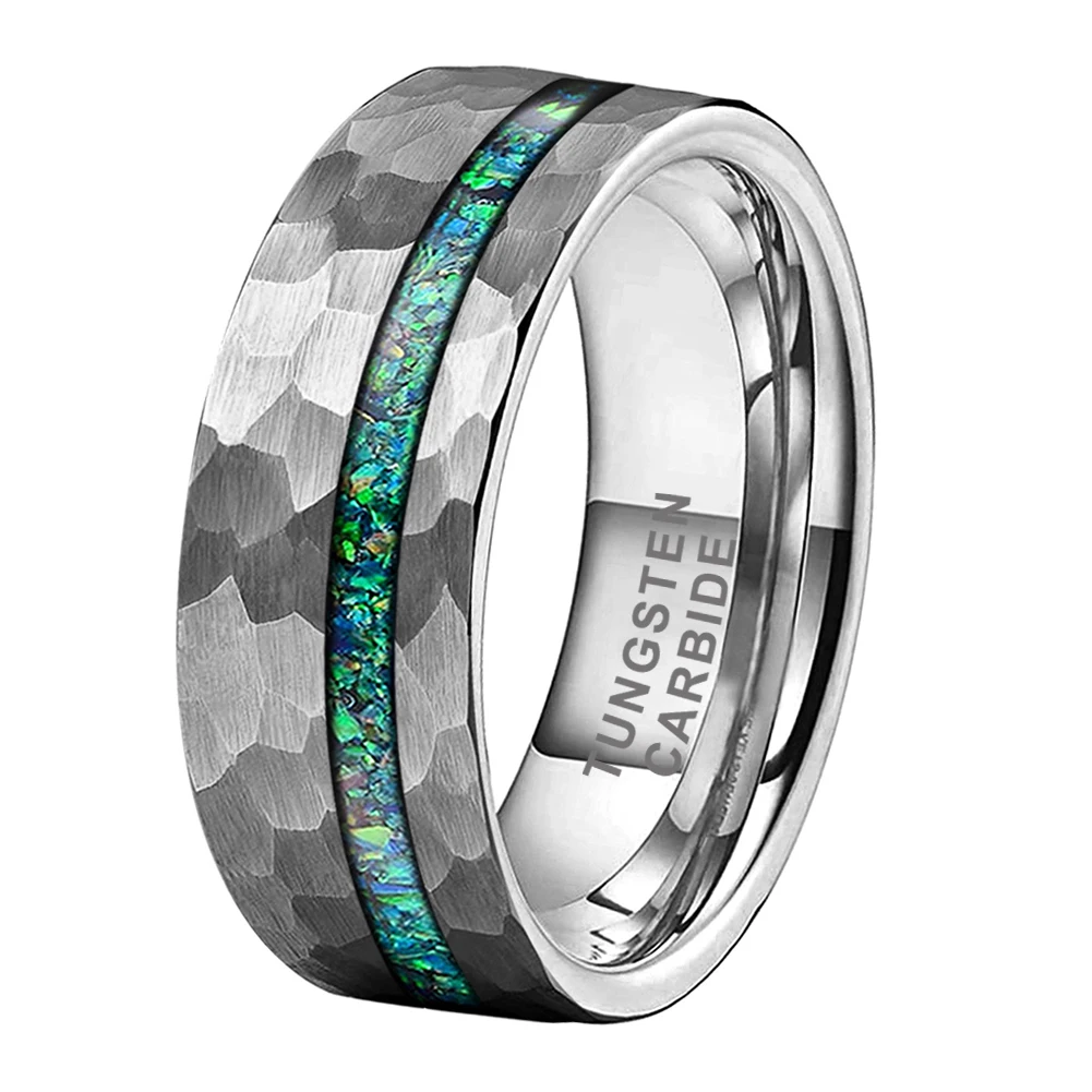 Coolstyle Jewelry 8mm Wholesale Matte Men Women Fashion Engagement Wedding Band Green Opal Inlay Hammered Tungsten Carbide Ring