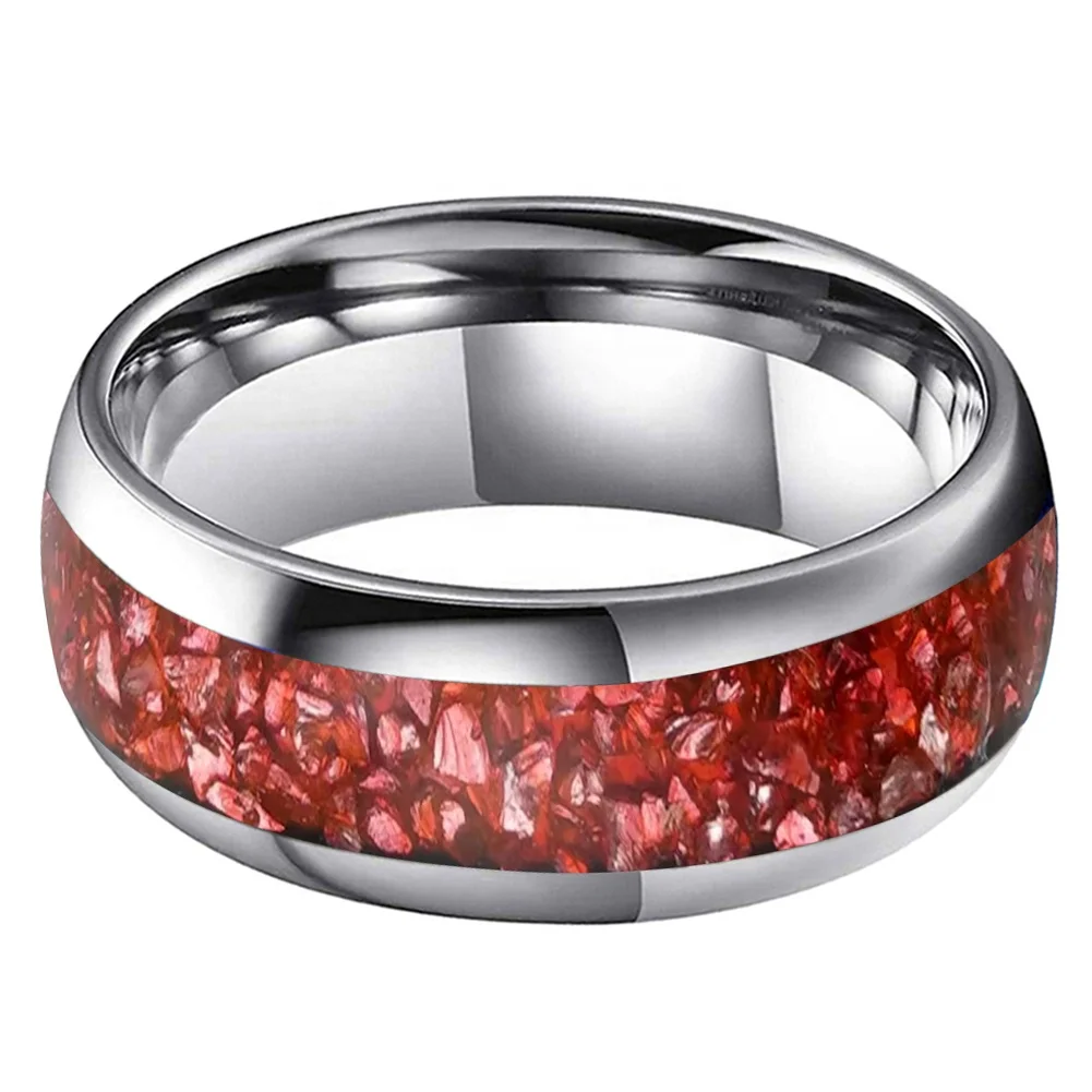 Coolstyle Jewelry 8mm Engagement Promise Wedding Band for Men Women Imitated Red Agate Chip Inlay Domed Tungsten Carbide Ring