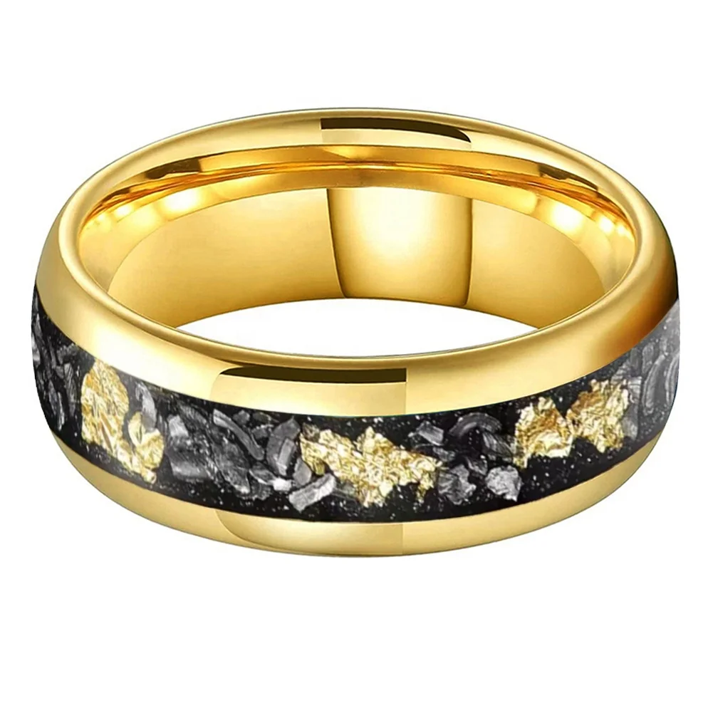 Coolstyle Jewelry 8mm Engagement Wedding Band for Men Women Imitated Meteorite Chip Gold Foil Inlay Gold Tungsten Carbide Ring