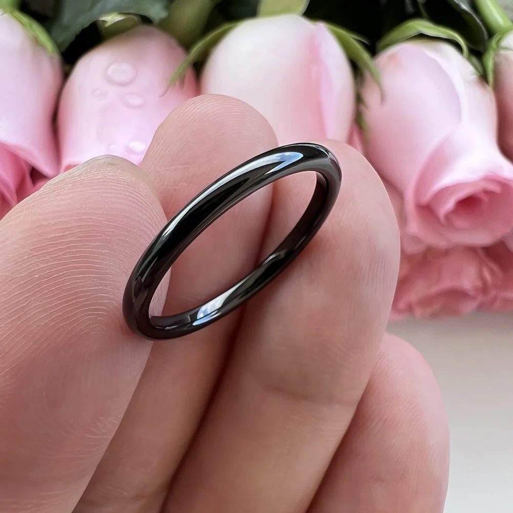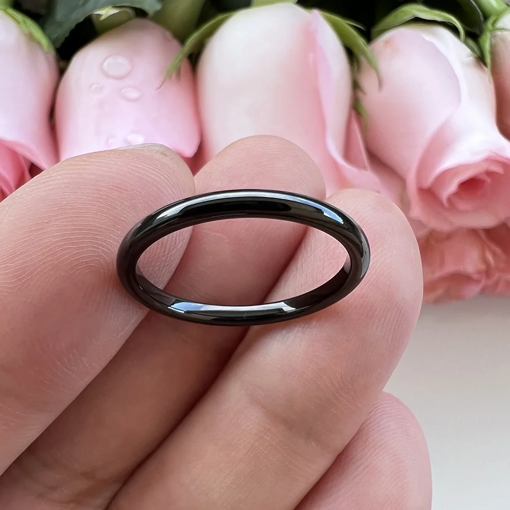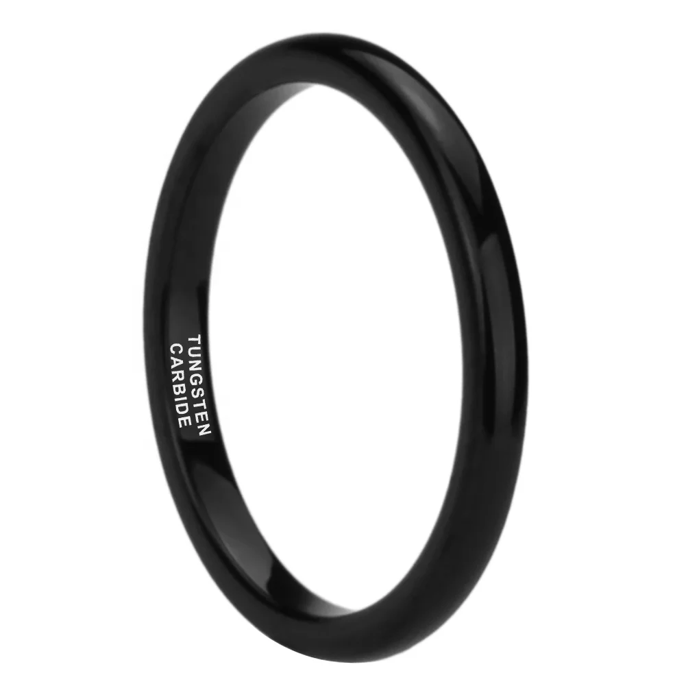 Coolstyle Jewelry Domed Polished 2mm Wholesale Black Tungsten Carbide Ring for Women Dropshipping Engagement Wedding Bands