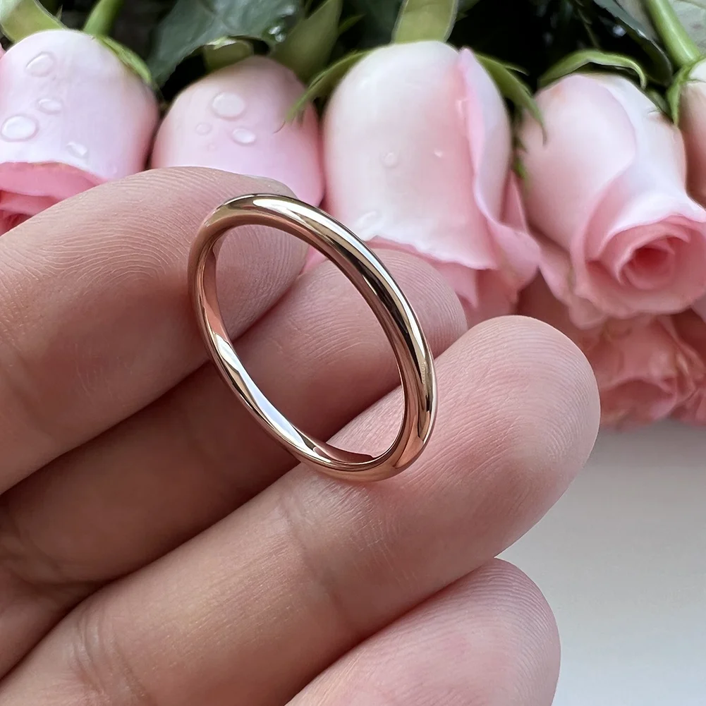 Coolstyle Jewelry Wholesale 2mm Stackable Rose Gold Plated Tungsten Carbide Ring for Women Fashion Engagement Wedding Band