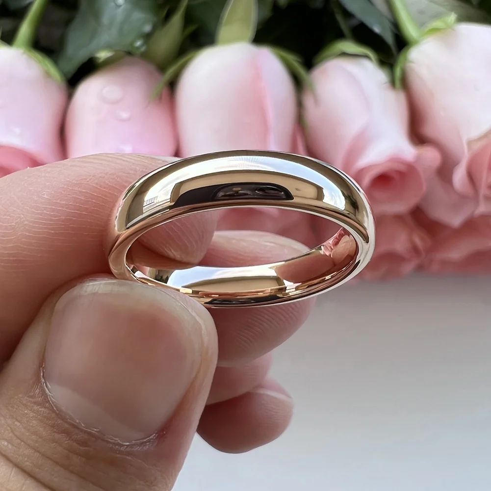 Coolstyle Jewelry Wholesale 4mm Rose Gold Plated Tungsten Carbide Finger Ring for Women Men Fashion Engagement Wedding Band