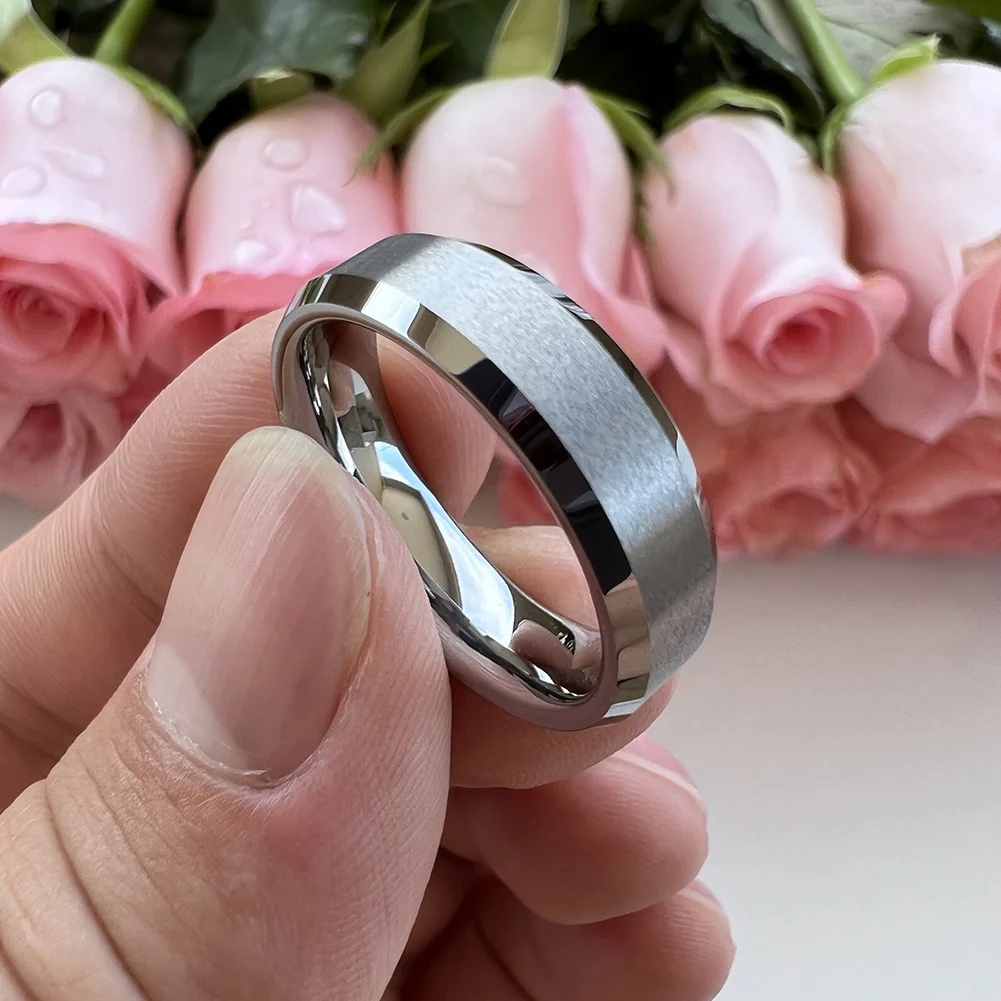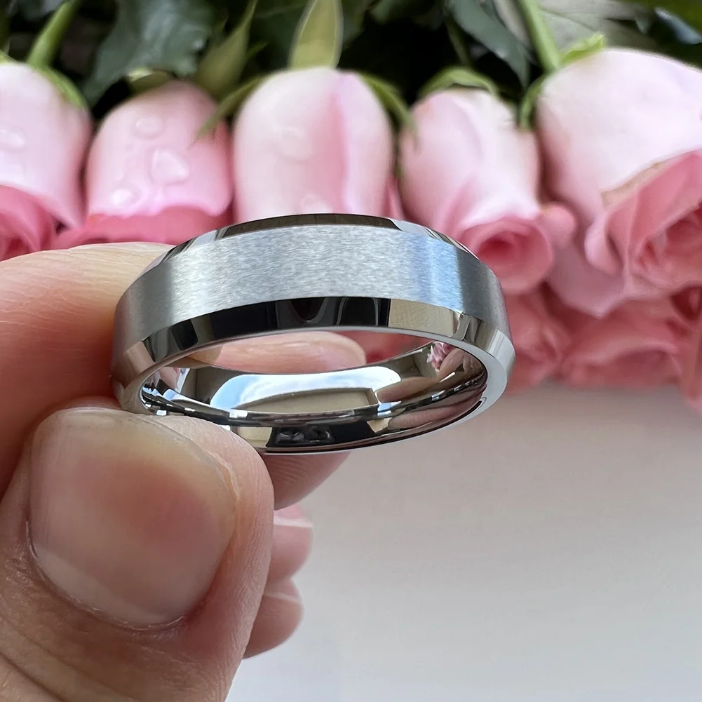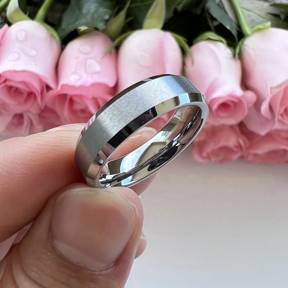 Coolstyle Jewelry 6mm Wholesale Beveled Matte Finish Fashion Engagement Wedding Band Tungsten Carbide Ring for Men Women