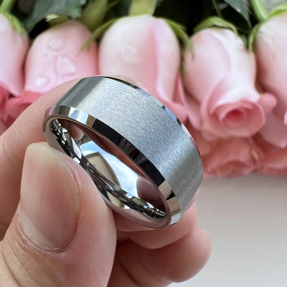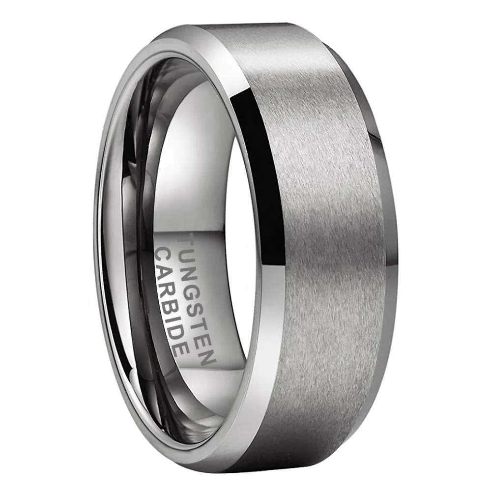 Coolstyle Jewelry 8mm Wholesale Beveled Matte Finish Fashion Engagement Wedding Band Tungsten Carbide Ring for Women Men